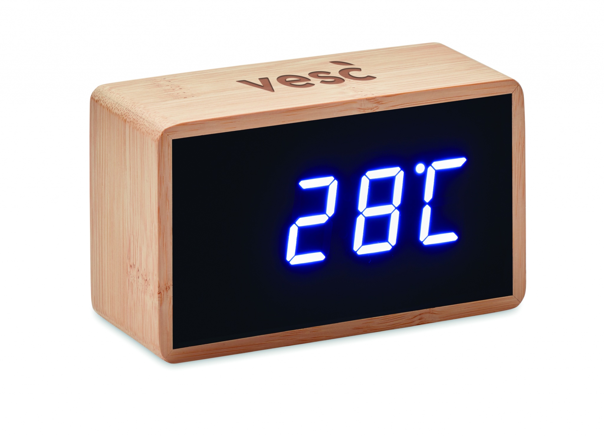 Bambuinen LED herätyskello, lämpötilanäytöllä. Sisältää AC-DC2 pistoke laturin, ei sovellu käytettäväksi UK. Luonnollisen materiaalin (bambu) vuoksi, tuotteiden värissä/ koossa saattaa olla erinäisyyksiä ja tämä voi vaikuttaa painatuksen lopputulokseen.