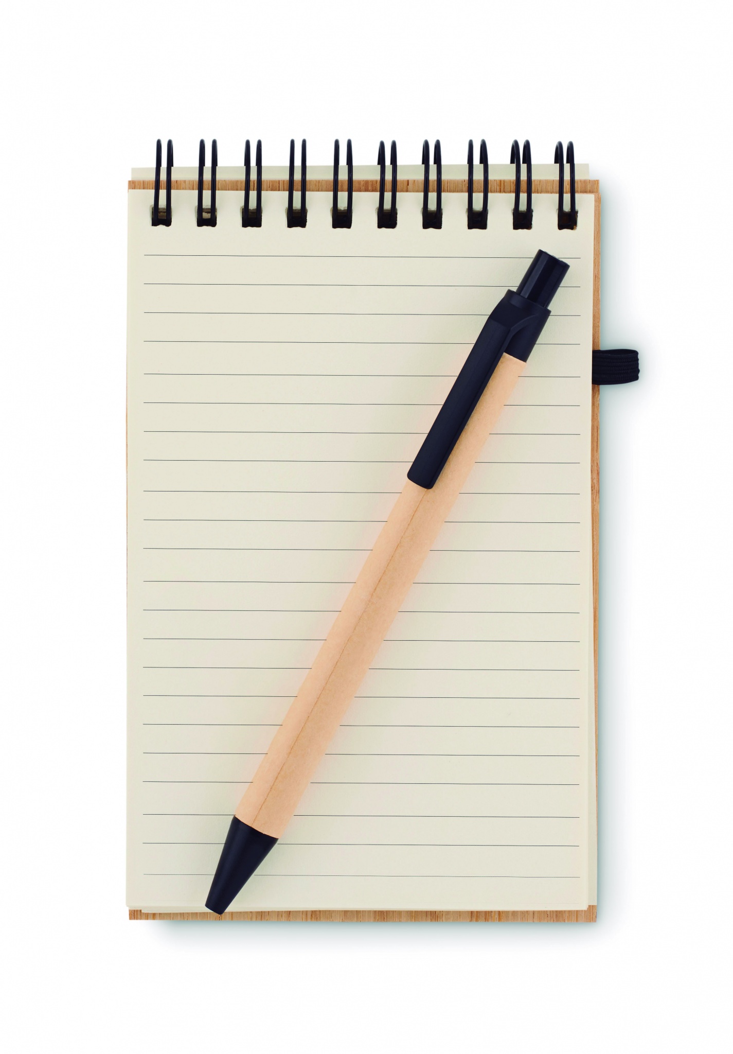A6 bambuinen muistikirja 70 viivoitetulla kierrätetyllä paperilla, sisältää yhteensopivan kierrätetyn kuulakärkikynän sinisellä musteella, PLA kärjellä ja klipsillä. Luonnollisen materiaalin (bambu) vuoksi, tuotteiden värissä/ koossa saattaa olla erinäisyyksiä ja tämä voi vaikuttaa painatuksen lopputulokseen.