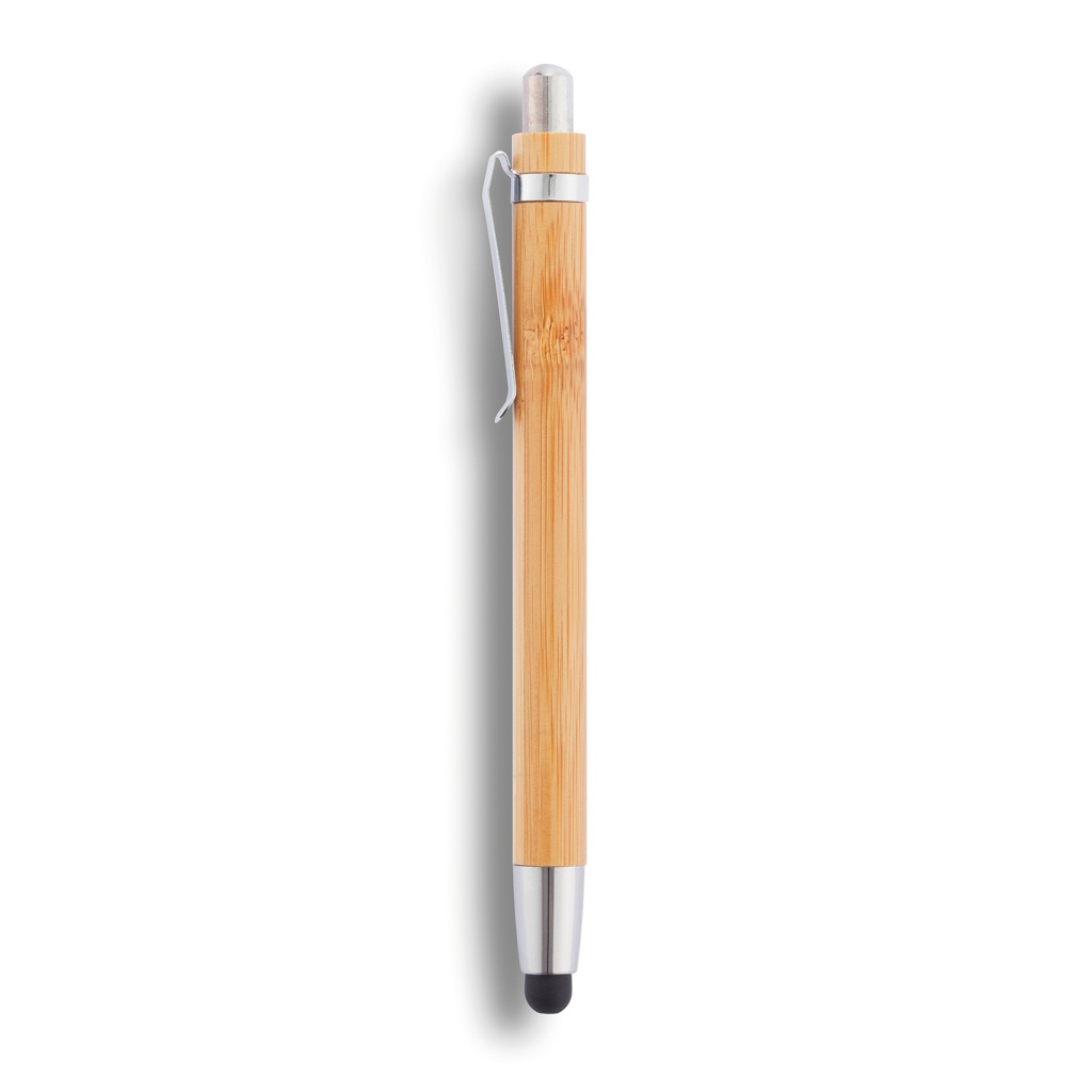 Bambukosketuskynä integroidulla osoitinkärjellä ja kuulakärjellä.