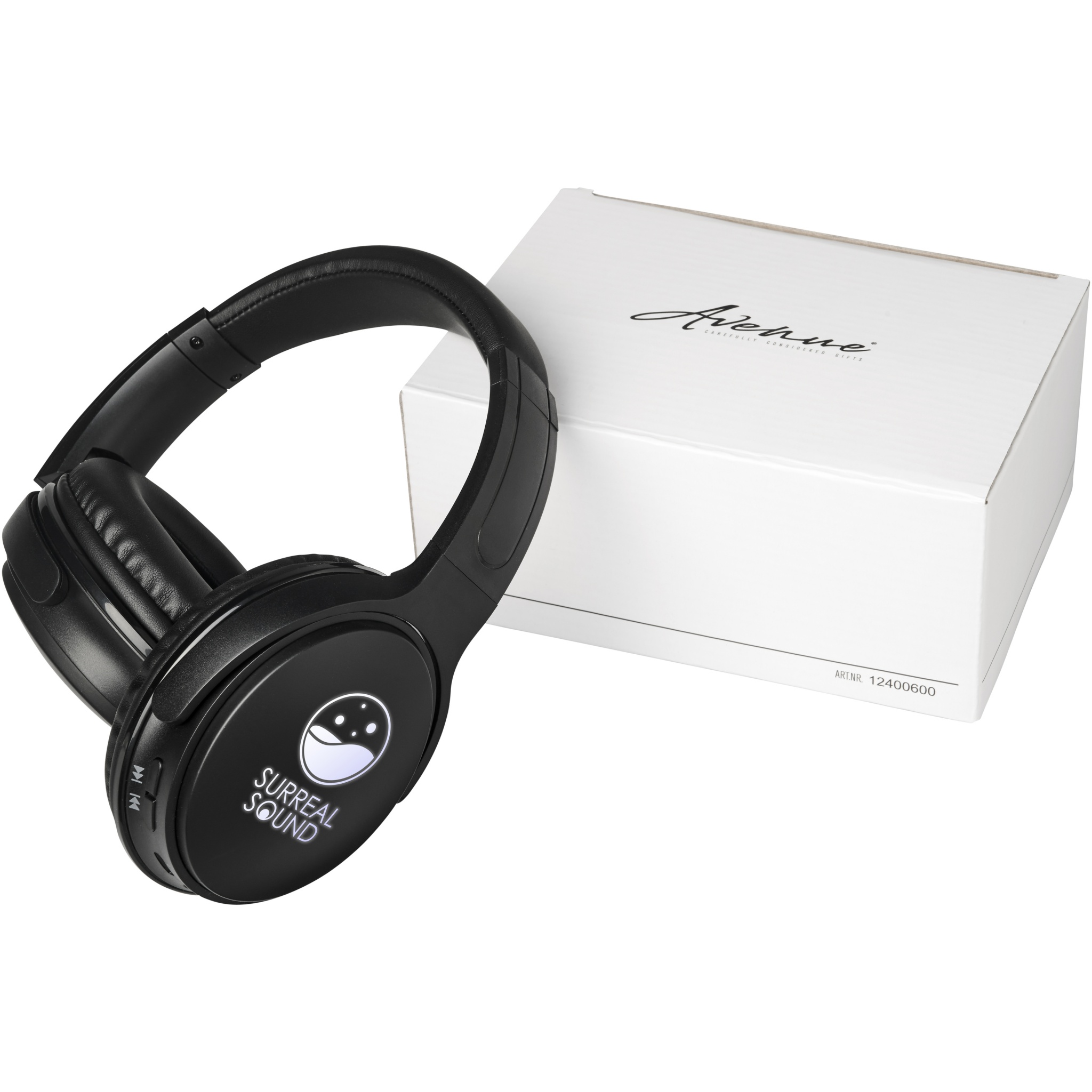 Blazen valaistuissa Bluetooth®-kuulokkeissa syvä basso ja lauluäänen selkeys ovat omaa luokkaansa, joten musiikin voiman voi todella tuntea. Kummankin korvakupin alla on LED-paneeli. Kun ne koristellaan laserkaiverruksella, yrityksen logoon syttyy valo! Kuulokkeilla voi kuunnella musiikkia suoratoistona Bluetooth®-yhteensopivista laitteista täysin langattomasti – ilman kompromisseja. Sisäänrakennetuilla musiikin säätimillä voi siirtyä musiikin ja puheluiden välillä. Kuulokkeissa on sisäänrakennettu mikrofoni, Micro USB -kaapeli ja säädettävä sanka – ja jopa 3 tuntia toistoaikaa. Voidaan taittaa sisään kuljetuksen ajaksi. Bluetooth®-toiminta-alue on 10 metriä (33 jalkaa). Bluetooth®-versio 5.0. Valotoiminto ei toimi, ellei tuotteessa ole laserkaiverrusta.