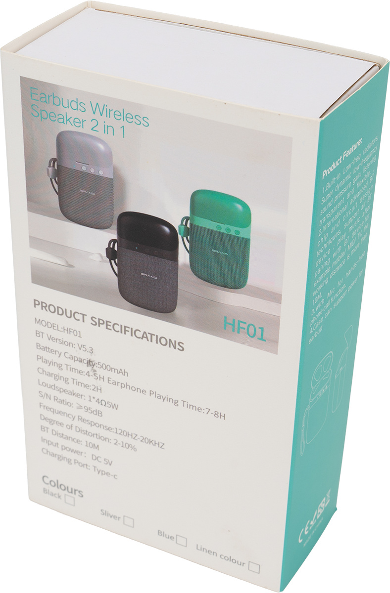 Tuotteet Kaikki tuotteet Bluetooth-kaiutin HF01 sisäänrakennetuilla nappikuulokkeilla 2-in-1