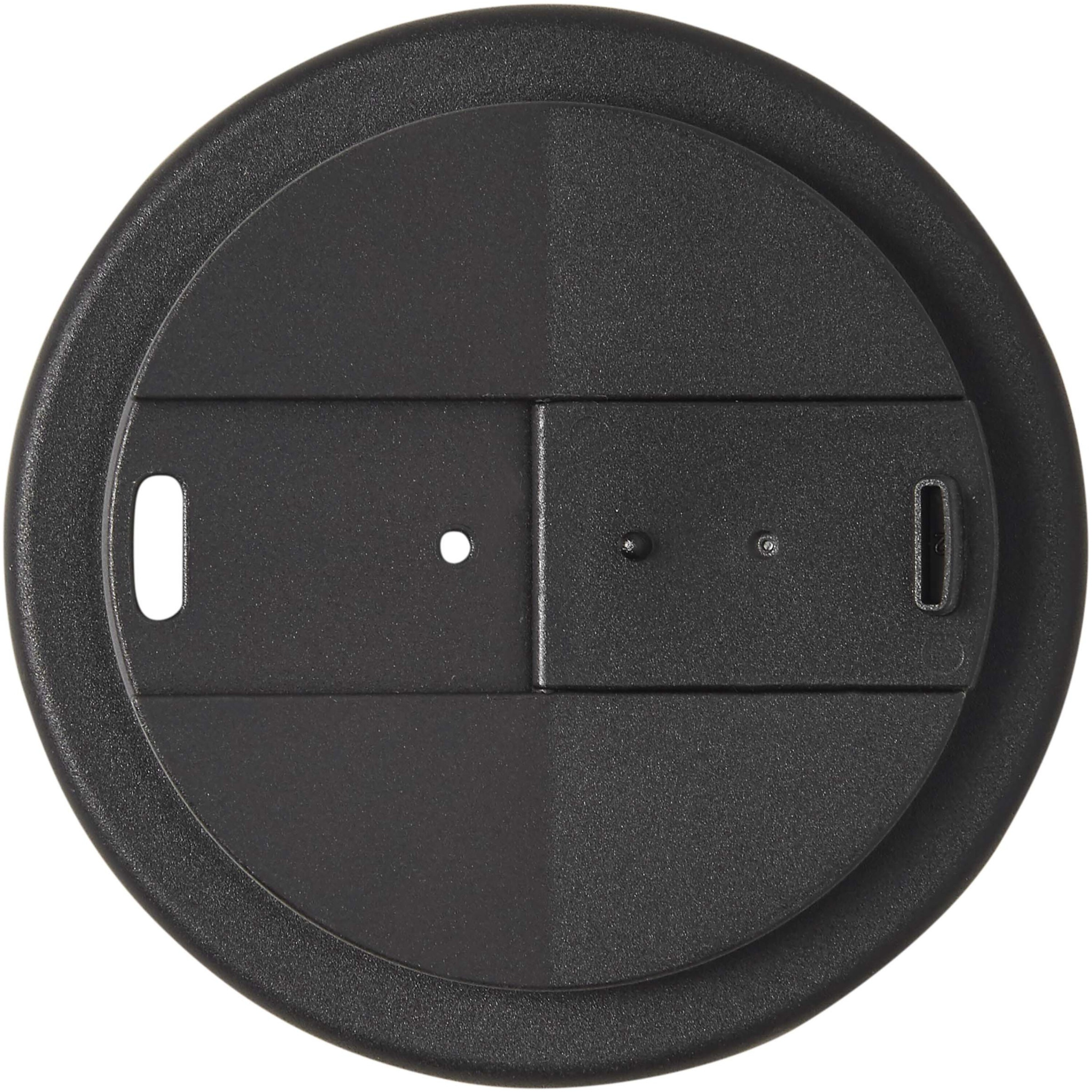 Kaksiseinäinen eristetty kahvimuki, jossa on kierrettävä läikyttämätön kansi ja jota ympäröi värillinen, materiaaliin upotettu kuvio. Muki on valmistettu yhteensä 70 %:sti kierrätysmateriaalista (kierrätetty muki ja musta sisäpuoli) ja siinä on tavallinen PP-kansi. Muki on täysin kierrätettävä ja konepestävä ja sitä voi käyttää mikroaaltouunissa. Tilavuus 350 ml, BPA-vapaa. Pakattu kotona kompostoitavaan pussiin. Valmistettu Isossa-Britanniassa.