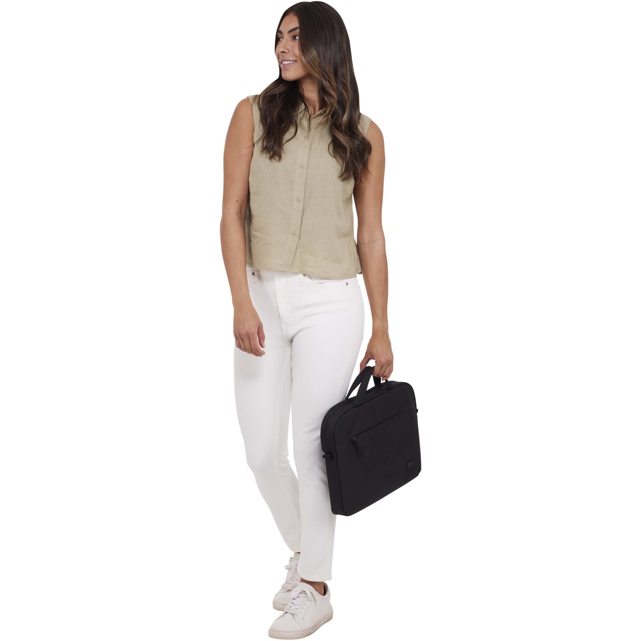 Case Logic Invigo -laukku kannettavalle sisältää pehmustetun säilytystilan kannettavalle tietokoneelle ja tabletille sekä muita käteviä ominaisuuksia arkikäyttöön. Laukun ulkopinta on 100-prosenttisesti kierrätettyä 600D -polyesteria ja vuori 150D-polyesteria. Sisältää pehmustetun 15,6 tuuman lokeron kannettavalle tietokoneelle sekä 12,9 tuuman tablettikotelon. Sisäpuolella on järjestelytaskuja, ja edessä on vetoketjullinen tasku pienille esineille, kuten avaimille. Takapaneelin tasku pitää tärkeät tavarat kuten passin tai lompakon piilossa, mutta silti käden ulottuvilla. Laukussa on myös matkalaukkuhihna, jonka avulla laukku voidaan kiinnittää vedettäviin matkalaukkuihin vaivatonta matkustamista varten.