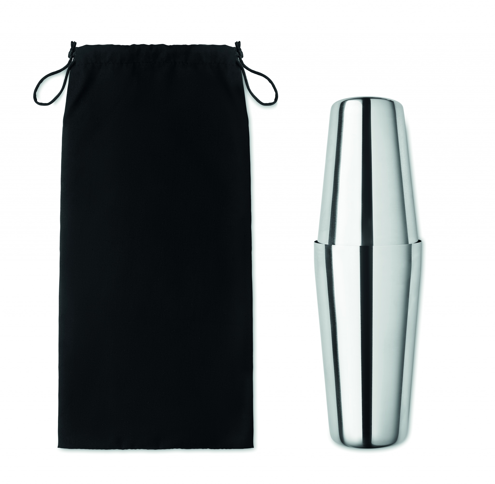 Ruostumattomasta teräksestä valmistettu cocktailisetti, sisältää 750 ml ravistimen, mittakannun (30 ml) ja seulan. Pakattuna puuvillapussissa.