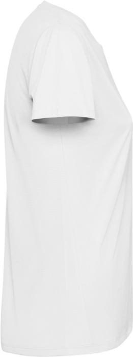 Lyhythihainen istuva tekninen t-paita naisille. Kaulus yhteensopivilla saumoilla. Takahelma hieman pidempi kuin edessä. Sivusaumat siirretty eteenpäin.
