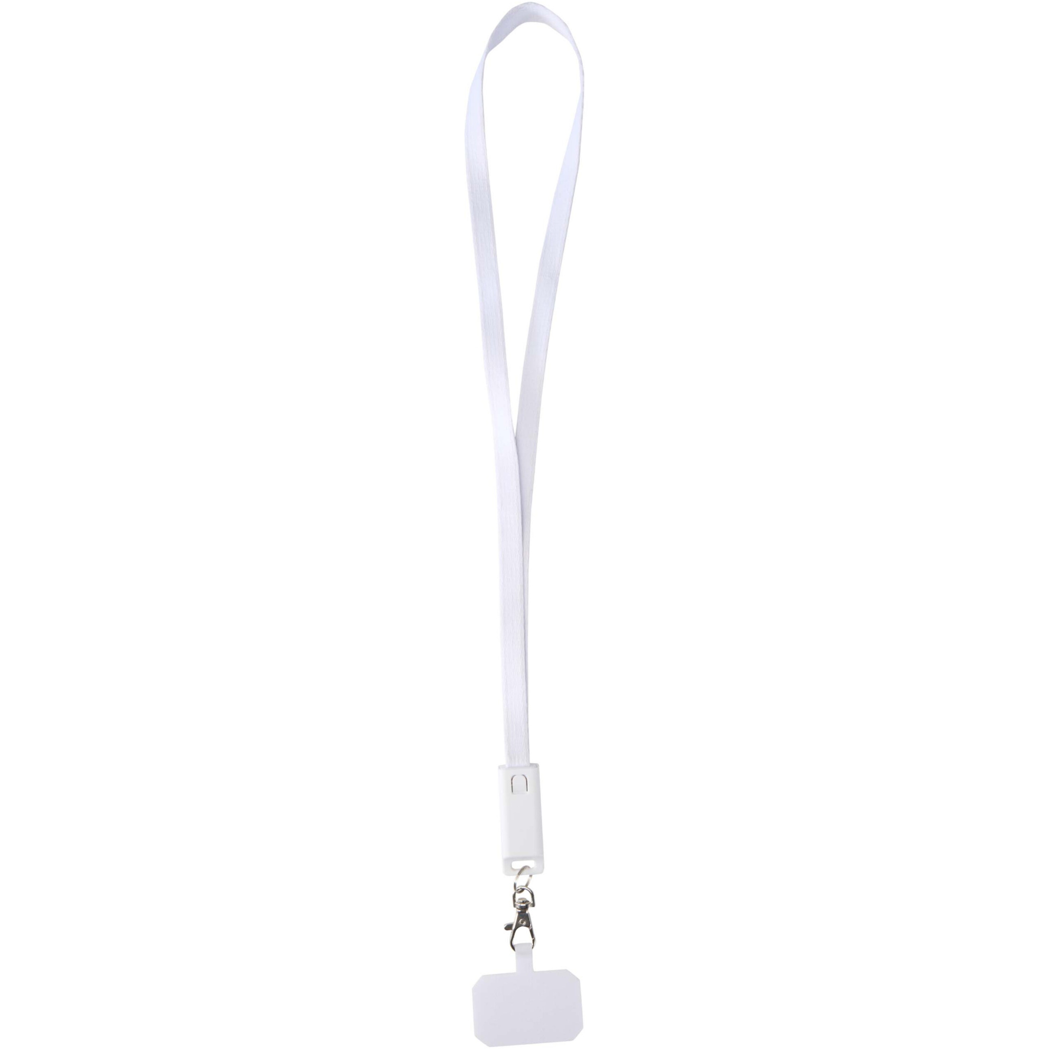 Franz kierrätetystä muovista valmistettu älypuhelinkaulanauha, jossa on sisäänrakennettu datasynkronointi- ja 65 W:n 5-in-1-pikalatauskaapeli, Valkoinen