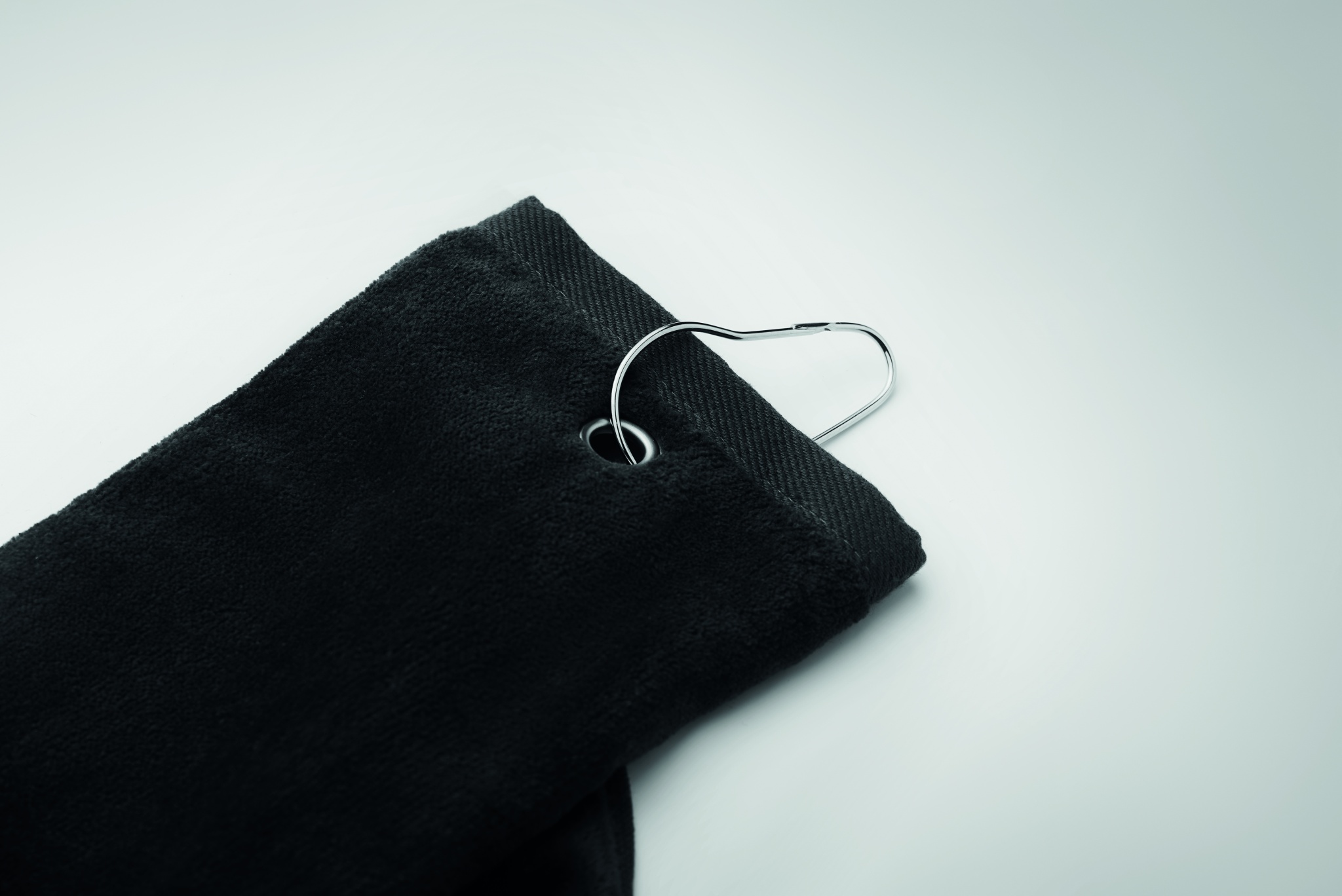 350 gr/m² puuvilla golf pyyhe kuparisella reiällä ja renkaalla pyyhkeen ripustamiseen. Pyyhkeen koko 40x60 cm.