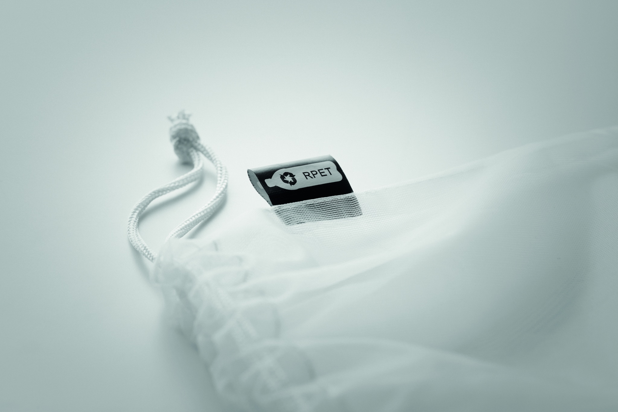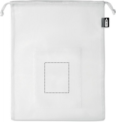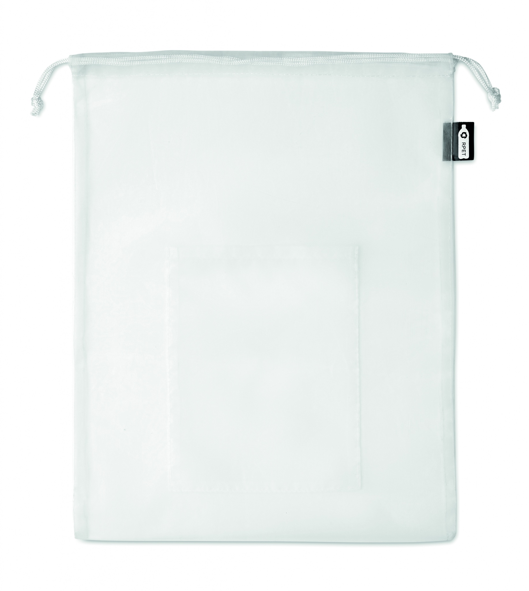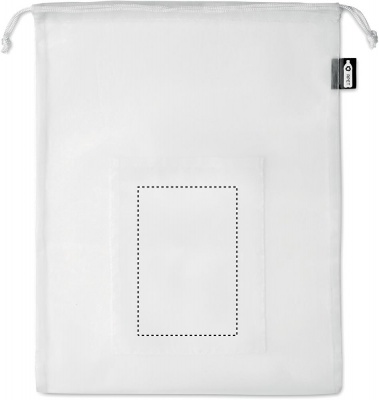 RPET verkko hedelmäpussi PP naruilla ja etutaskulla.
