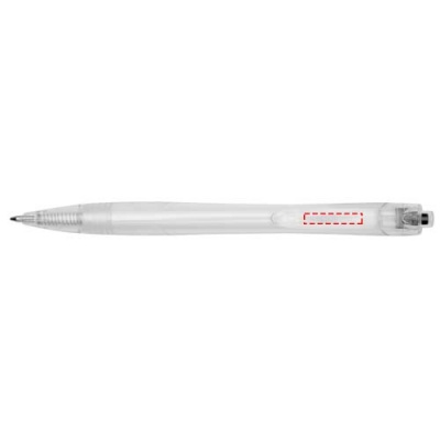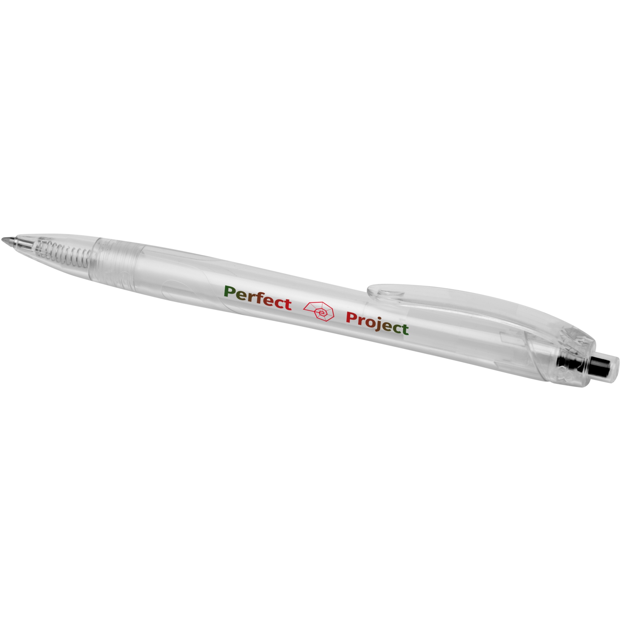 Neitsytmuovin käyttöä vähentävästä kierrätetystä RPET-muovista valmistettu napsautettava kuulakärkikynä. Kuulakärkikynässä on läpinäkyvä runko ja värillinen painike. Sininen muste, voidaan yhdistää 107763 Honua RPET -muistion kanssa.