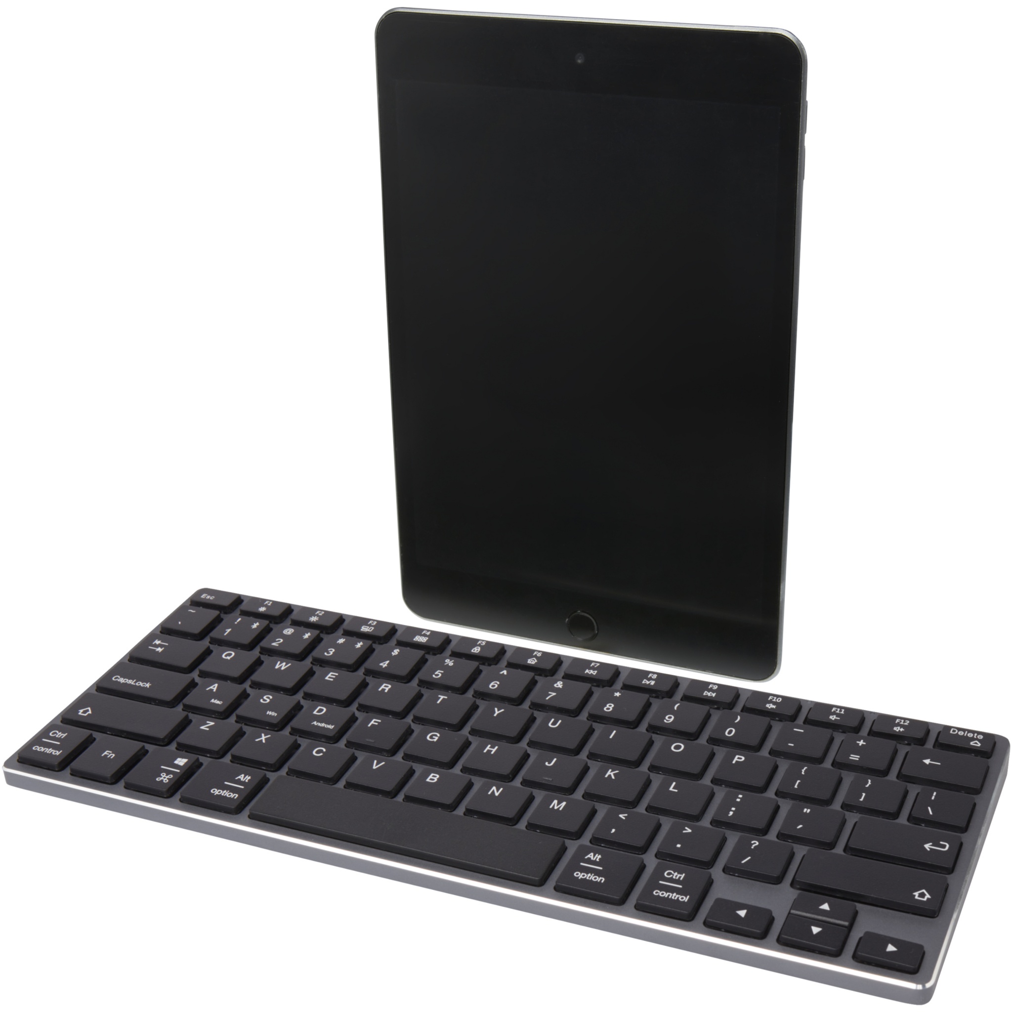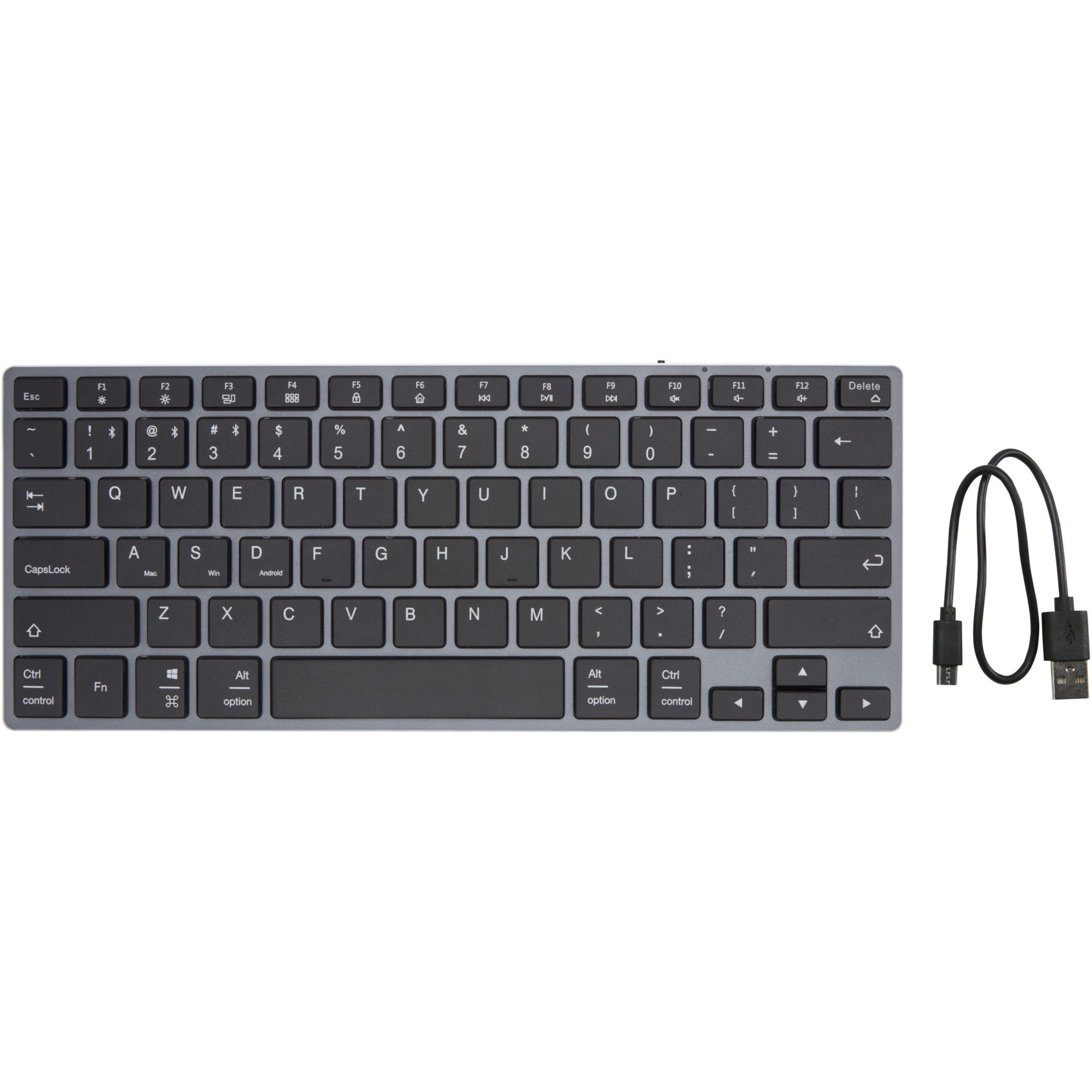 Höyhenenkevyt näppäimistö (78 näppäimen QWERTY-asettelu) kestävällä alumiinikotelolla. Tyylikäs lisävaruste kotona työskentelyyn. Näppäimistössä oleva Bluetooth® 4.0 takaa vakaan yhteyden ja pienen virrankulutuksen, ja se on yhteensopiva pöytätietokoneiden/kannettavien, tablettien, älypuhelinten, älytelevisioiden ja muiden Bluetooth®-laitteiden kanssa. Toimintaetäisyys on jopa 10 metriä. Sisäänrakennetun 350 mAh:n ladattavan akun valmiusaika on jopa 10 kuukautta yhdellä latauksella. Toimitetaan korkealaatuisessa voimapaperipakkauksessa, jossa on värikäs tarra.
