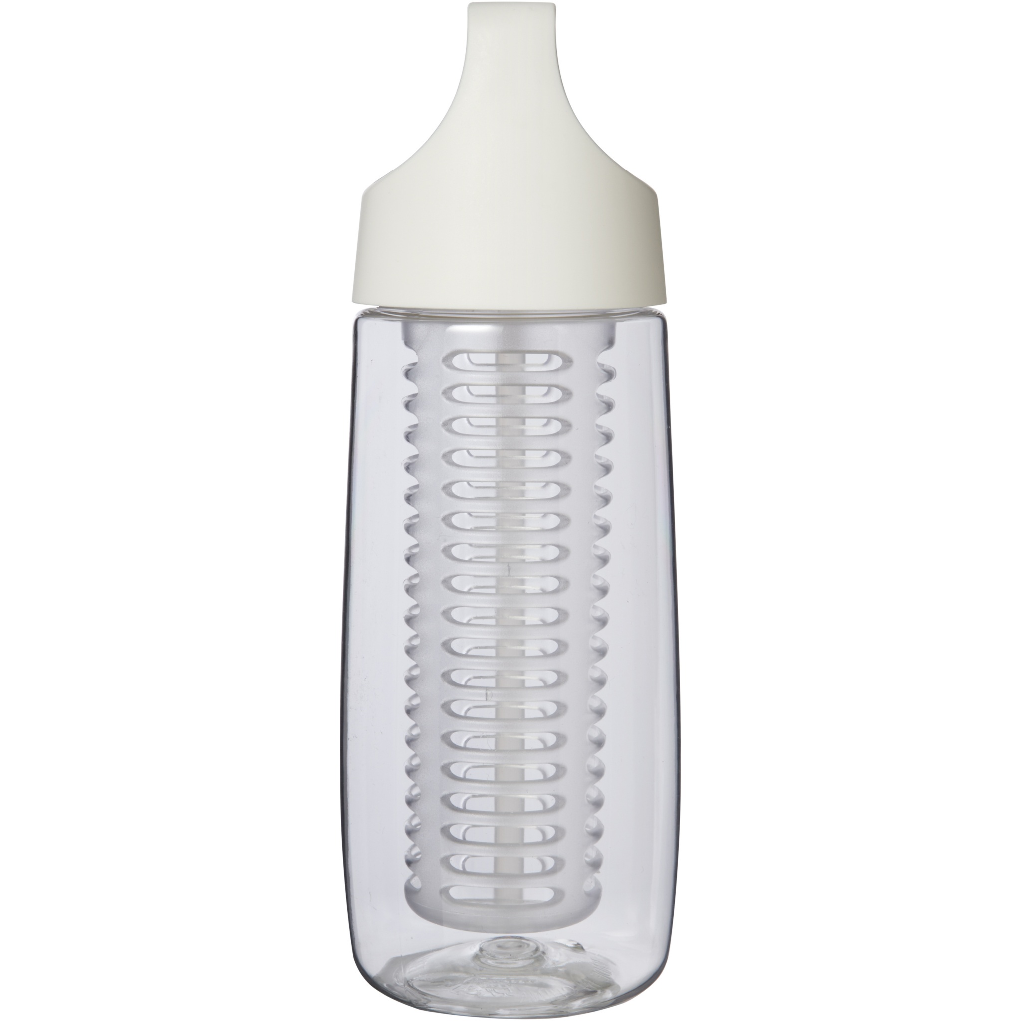 HydroFruit 700 ml:n urheiluvesipullo kierrätetystä muovista läppäkannella ja uuttajalla, Läpinäkyvä valkoinen