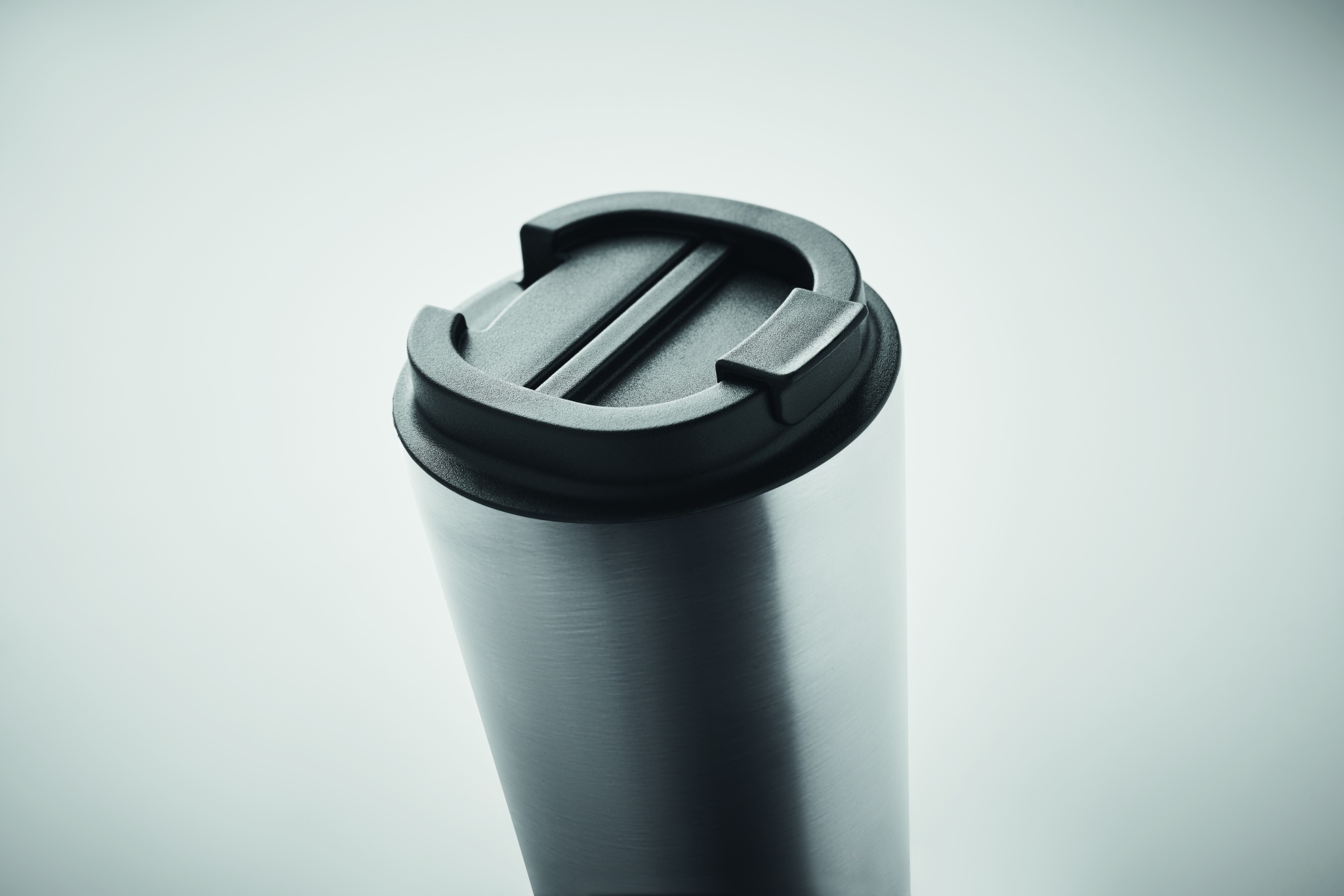 Kaksiseinäinen ruostumattomasta teräksestä valmistettu 510 ml juomapullo PP-kannella, tuote on vuoto vapaa.