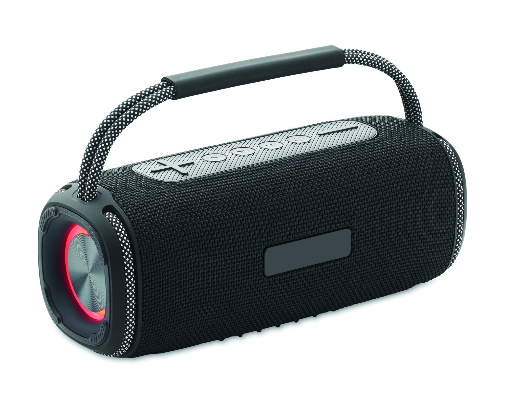 2x10 W langaton kannettava kaiutin, jossa on 2400 mAh:n ladattava akku. LED-valo vaihtuvissa väreissä kaiuttimen molemmilla puolilla. Sisältää AUX-, USB- ja TF-portit. Soittoaika n. 5 tuntia.