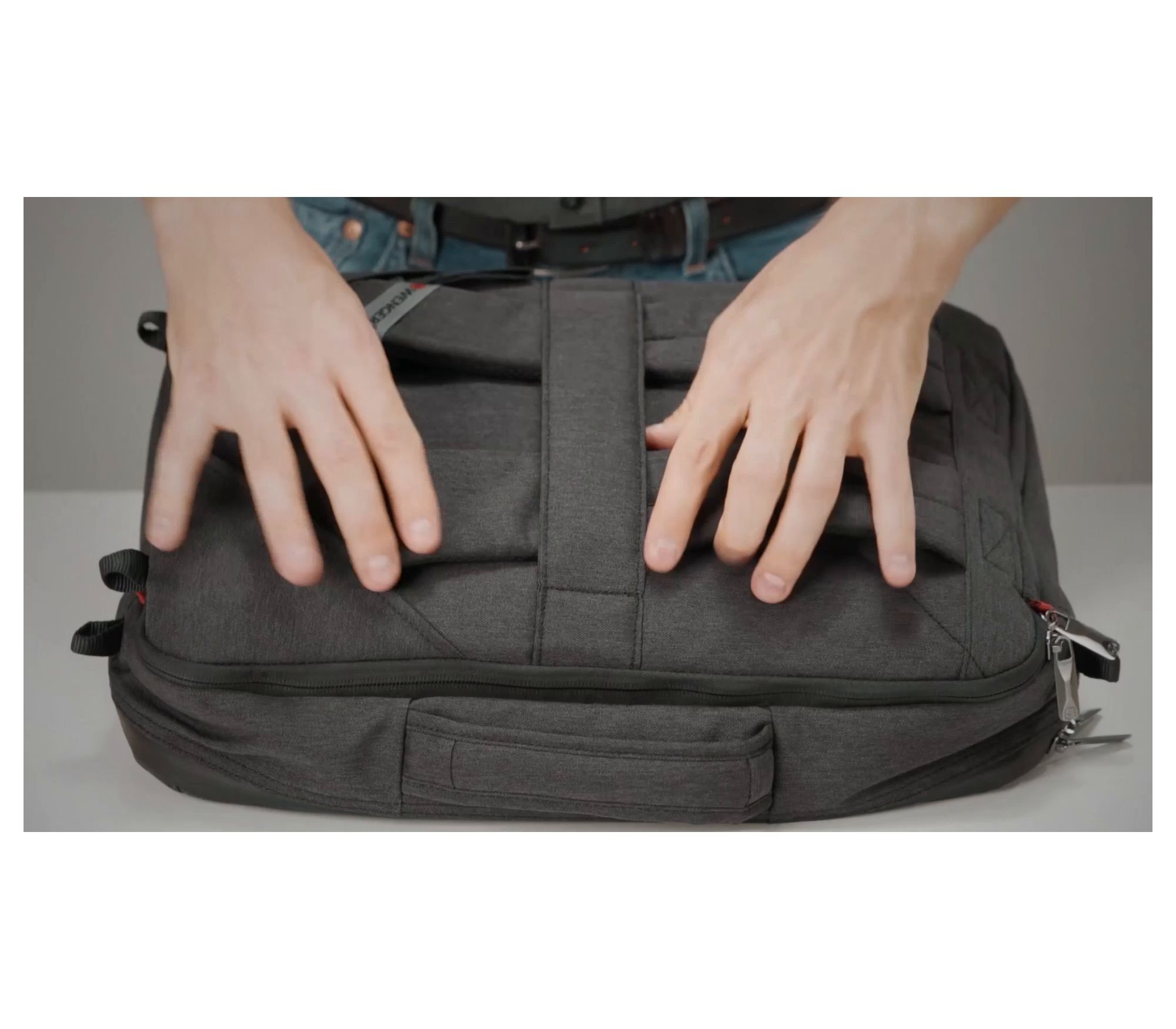 Kannettava tietokonelaukku 16 tuuman näytölle ja repun hihnat Kannettava tietokonelaukku täydellinen töihin matkustamiseen, tyylikäs ja mukava. Erityisen pehmustetun kannettavan tietokoneen lokeron ja sisäisen SmartOrg-organisaattorin ansiosta tämä malli säilyttää tyylikkäästi työssä tarvitsemasi olennaiset laitteet. Monipuolinen laukku, jota voidaan käyttää sekä reppuna että olkalaukkuna ja joka nauttii optimaalisesta mukavuudesta, kuljetpa sitten maan alla tai pyöräilet toimistoon. QuickAccess-tasku tarjoaa helpon pääsyn lippuisi tai tablet-laitteeseen, jonka näytön koko on 10. Laaja-aukoinen vetoketjullinen SmartOrg-järjestäjä pitää sinut järjestyksessä ja tarjoaa helpon pääsyn johtoihin, latureihin ja käyntikortteihin. useiden matkatavaroiden matkustaminen