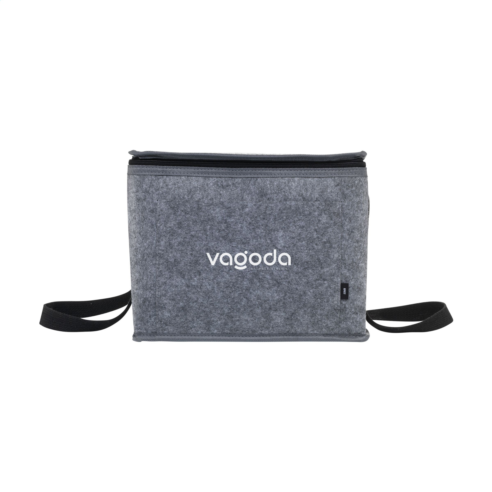 Vau! Iso kylmälaukku RPET-huovasta. Vuori 100% PEVA. Kantolenkeillä. GRS-sertifioitu. Kierrätysmateriaalia yhteensä: 63 %. Kapasiteetti n. 14 litraa.