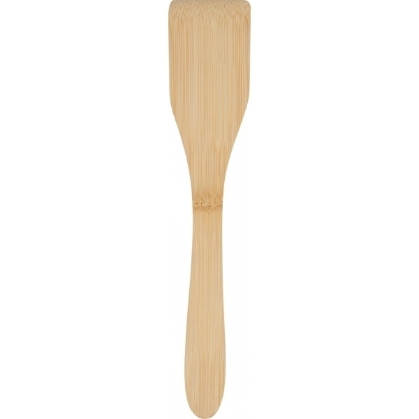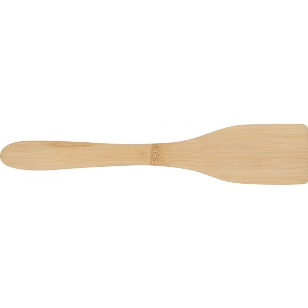 Kestävä, kestävä ja ympäristöystävällinen bambusta valmistettu ruoanlaittotyökalu, jota voidaan käyttää myös pannunkääntäjänä. Kaiverremme logosi kahvaan.