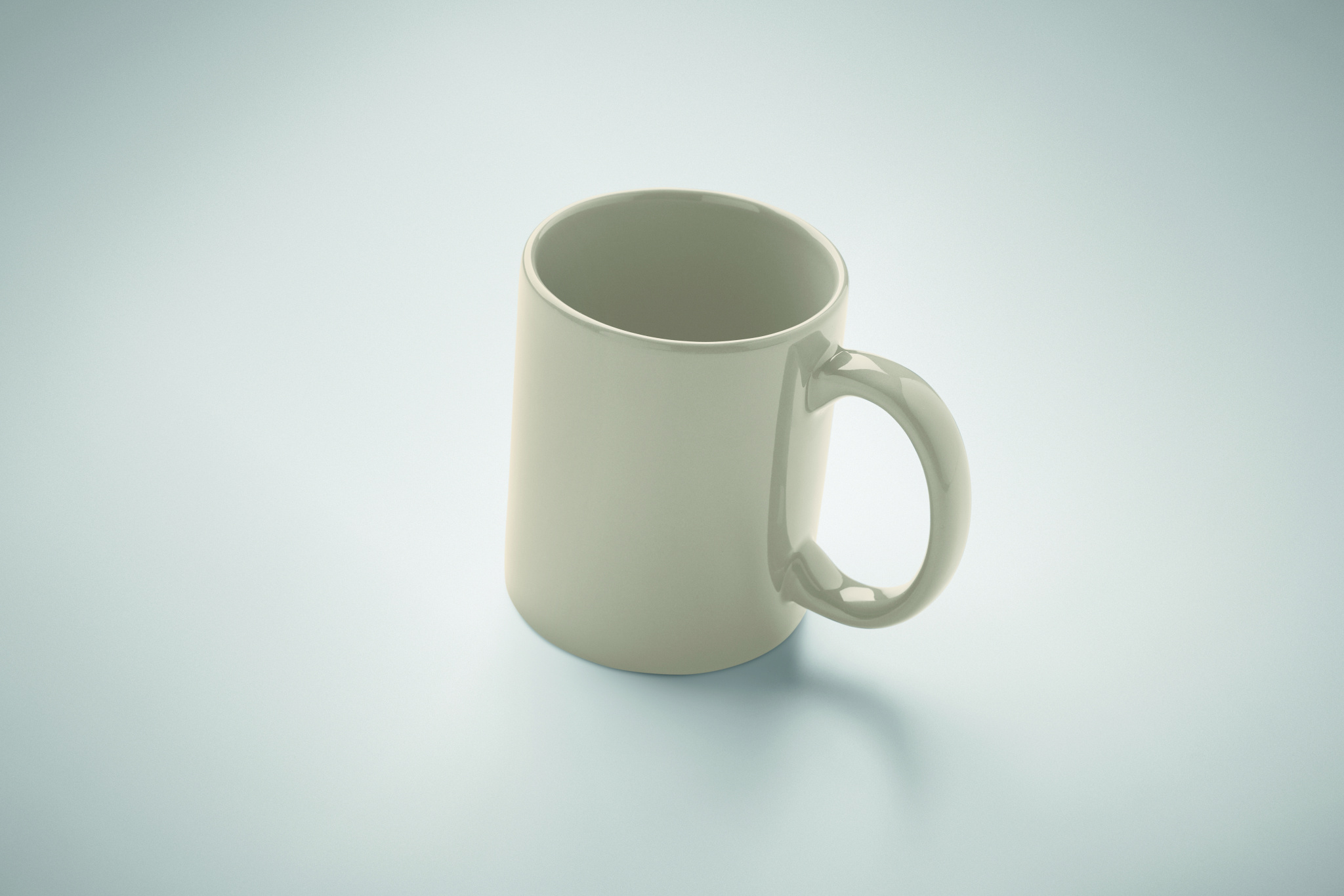 Keraaminen 300 ml muki, pakattuna aaltopahvi pakkaukseen. Keraamine siirtokuva on konepesun kestävä, tampopainatus ainoastaan käsinpesun kestävä.