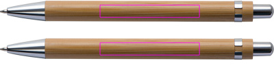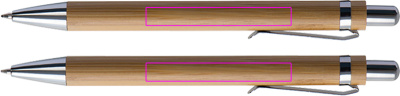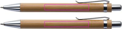 Kirjoitussetti bambusta, sisältää sinikirjoituksen kuulakynän ja mekaanisen kynän pahvikotelossa. Kaiverremme logosi molempiin kynään klipsien alle.