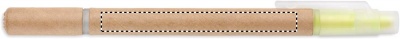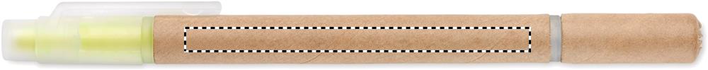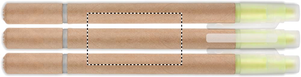 2 in 1 kuulakärkikynä kartonkisella rungolla ja sinisellä musteella, kynän päässä korostuskynä keltaisella tussilla.