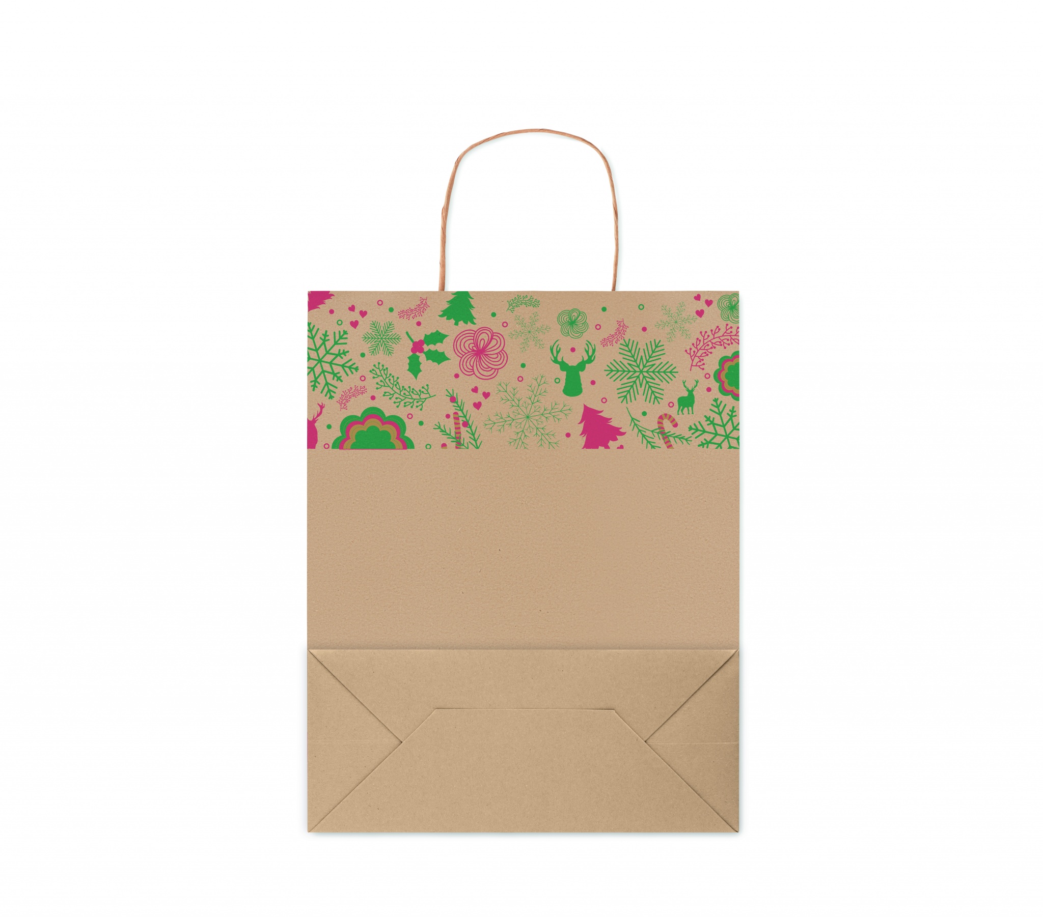 90 gr/m² jouluinen keskikokoinen lahjapaperipussi (50% kierrätettyä materiaalia) Valmistusmaa EU.