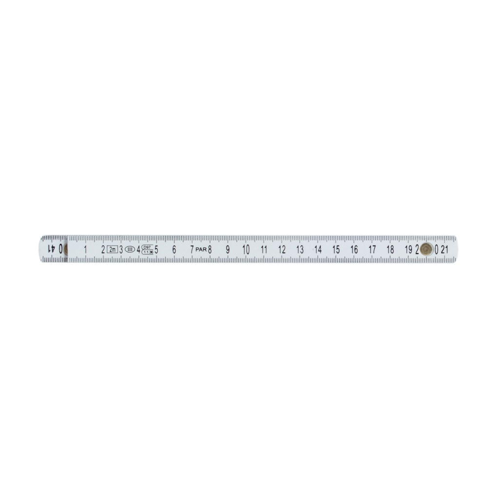 10 osaan taitettava, valkoinen, 2 metriä pitkä.