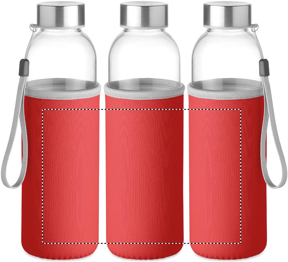 500 ml lasinen juomapullo neopreenipussissa, vuoto vapaa. Tuote ei sovellu käytettäväksi hiilihapollisilla nesteille.