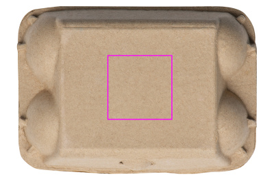 Liitumunat keltaisena, oranssina, punaisena, vihreänä, sinisenä ja violettina munapahvilaatikossa. Logosi painetaan kartongille.