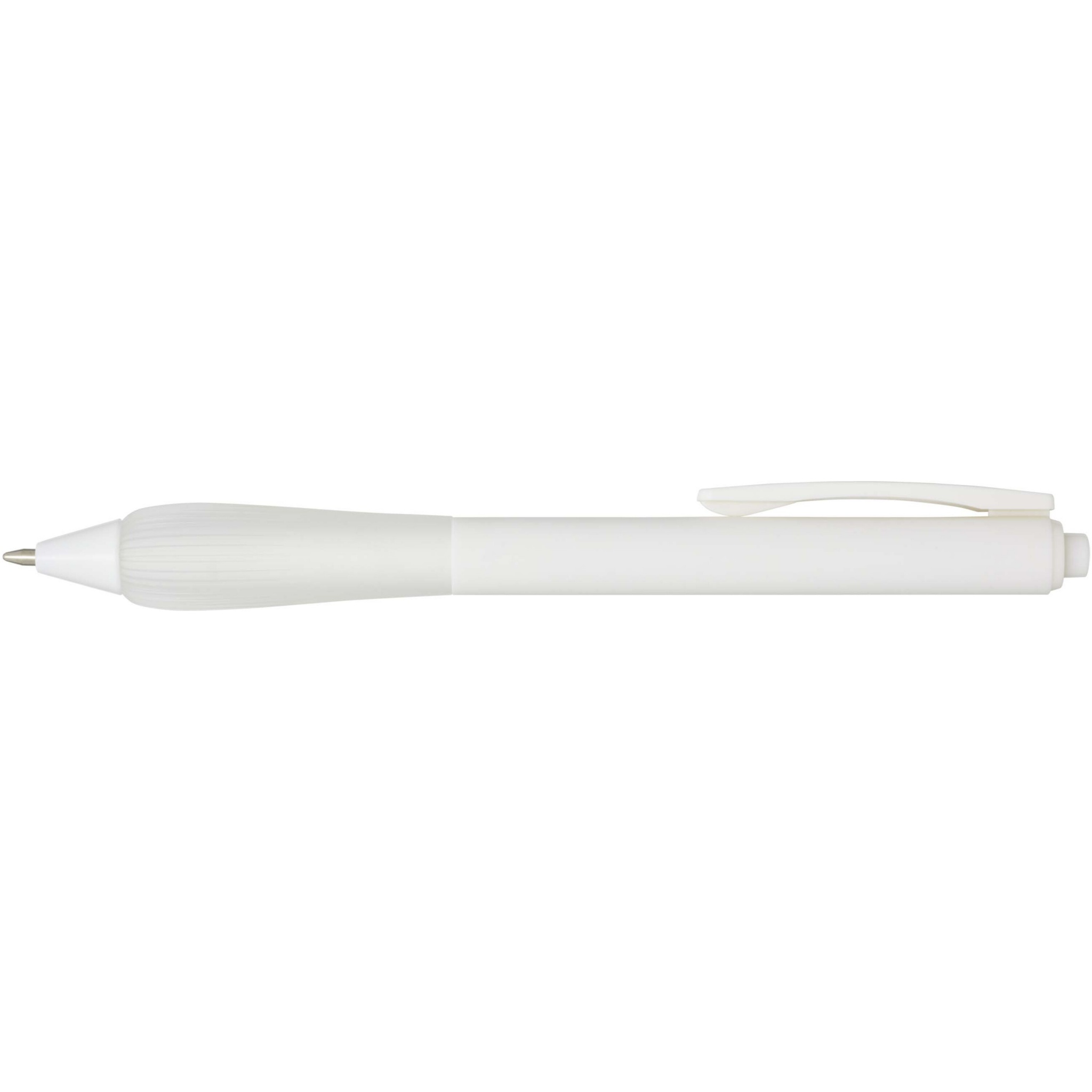 Kierrätysmuovista valmistettu kuulakärkikynä, jossa on kumipintainen runko ja TPR-pinta. Musteen väri: Musta. Kirjoituspituus: 1000 metriä. Kirjoitusjäljen paksuus: 1,0 mm.