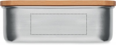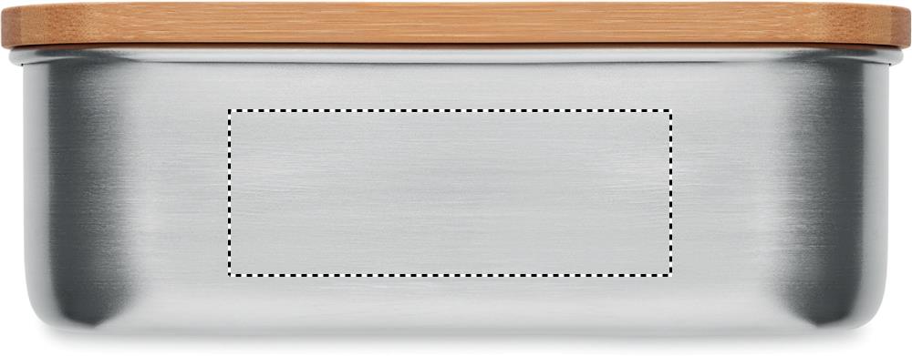 Ruostumattomasta teräksestä valmistettu 600 ml lounasrasia bambukannella ja kuminauhalla. Polyesterinen kuminauha pitää aterimet ja kannen paikoillaan. Luonnollisen materiaalin (bambu) vuoksi, tuotteiden värissä/ koossa saattaa olla erinäisyyksiä ja tämä voi vaikuttaa painatuksen lopputulokseen.