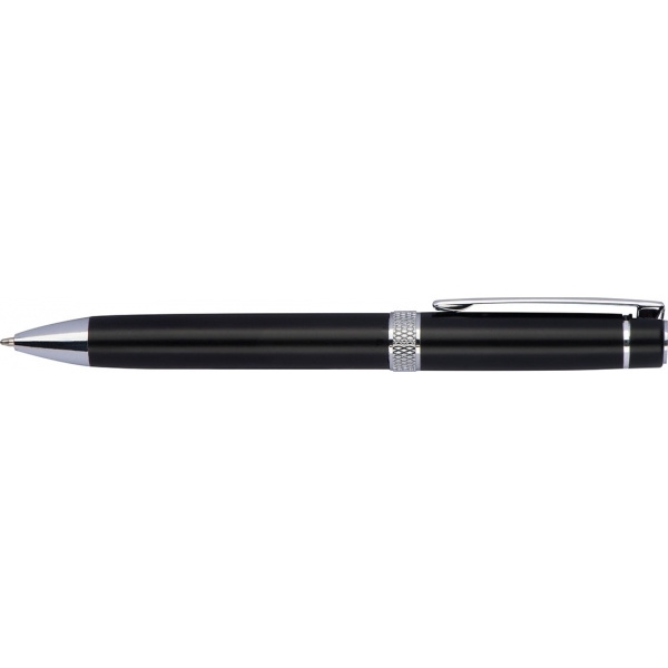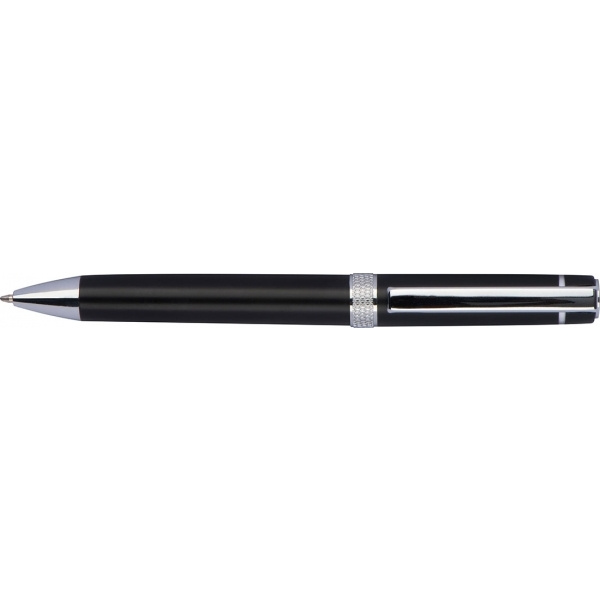 Kirjoitussetti, joka koostuu kierrettävästä kuulakärkikynästä, jossa on sininen kirjoitusjärjestelmän täyttö, ja sinisestä alumiinista valmistetusta kirjoitusrullapallosta kotelossa. Kromisovellukset ja kimaltelevat koristerenkaat antavat setille sen tyylikkään ilmeen. Logosi kaiverretaan molempiin kynään klipsien oikealle puolelle.