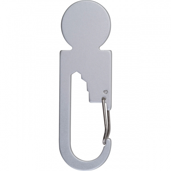 Alumiinista valmistettu monitoimityökalu, jossa on ostoskärryn vapautusmekanismi, kolme erikokoista kuusiokoloavainta ja karbiinihaka. Logosi on kiinnitetty ostoskärryn vapautusmekanismiin laserkaiverruksella.