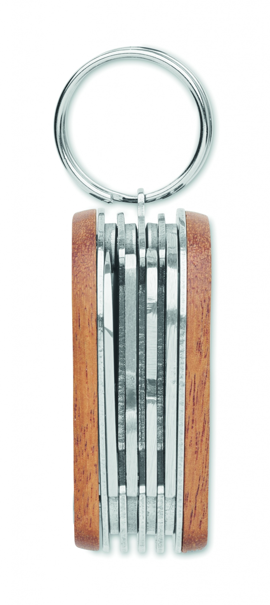 Ruostumattomasta teräksestä valmistettu monityökalu taskuveitsi, jossa on akaasiapuukahva. 7 toimintoa: pullonavaaja, veitsi, tölkinavaaja, viila, ruuvimeisseli, avainrengas ja 1 LED-valo. Mukana 3 nappiparistoa.