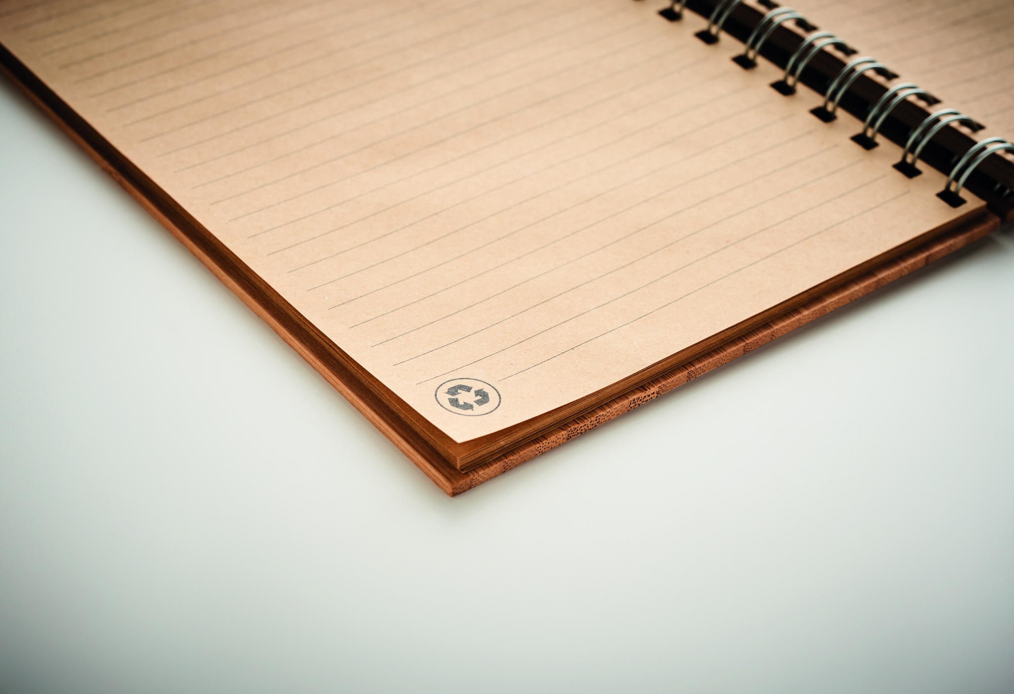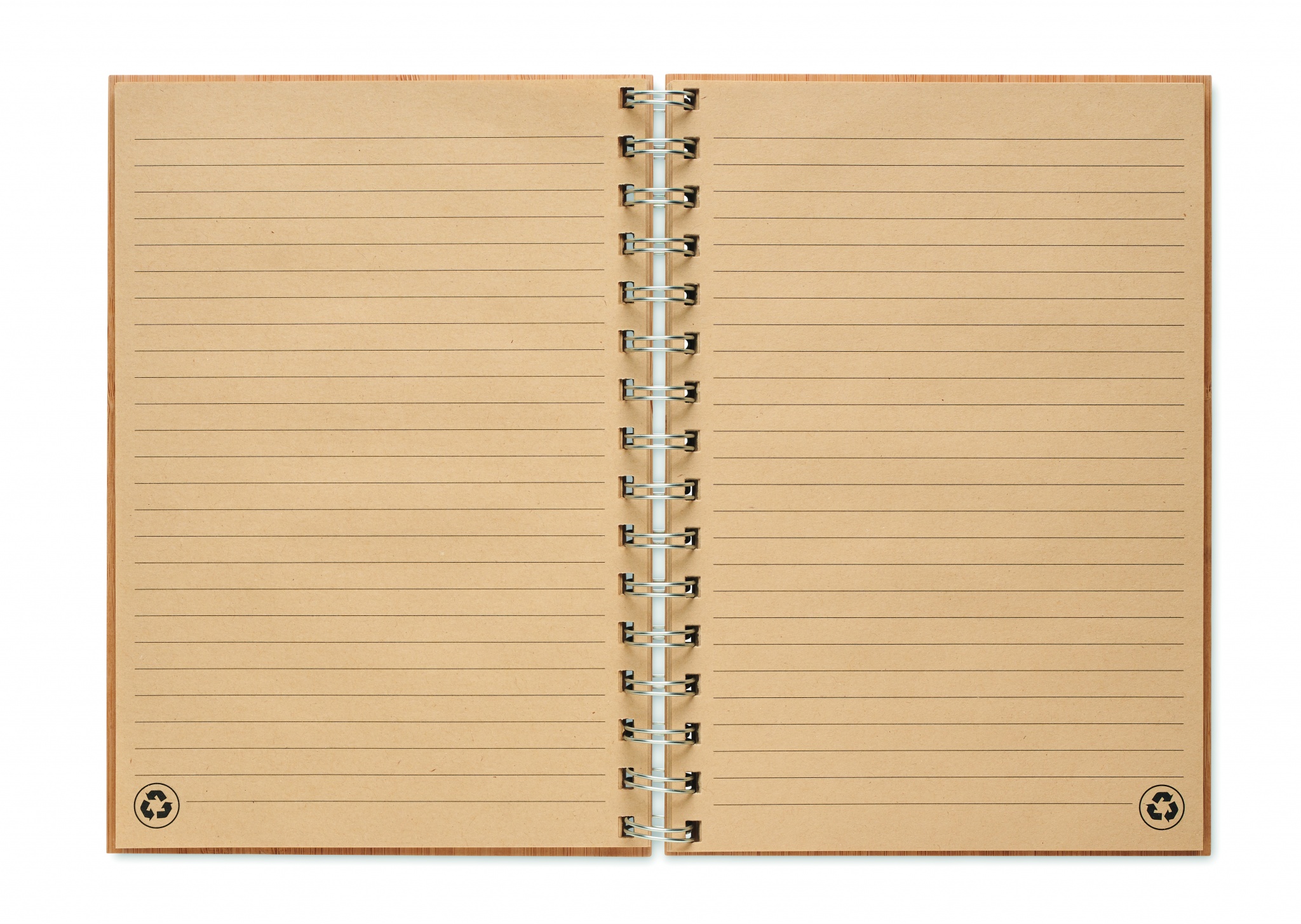 Bambukantinen muistikirja koko A5, jossa on 140 viivoitettua sivua (70 arkkia).