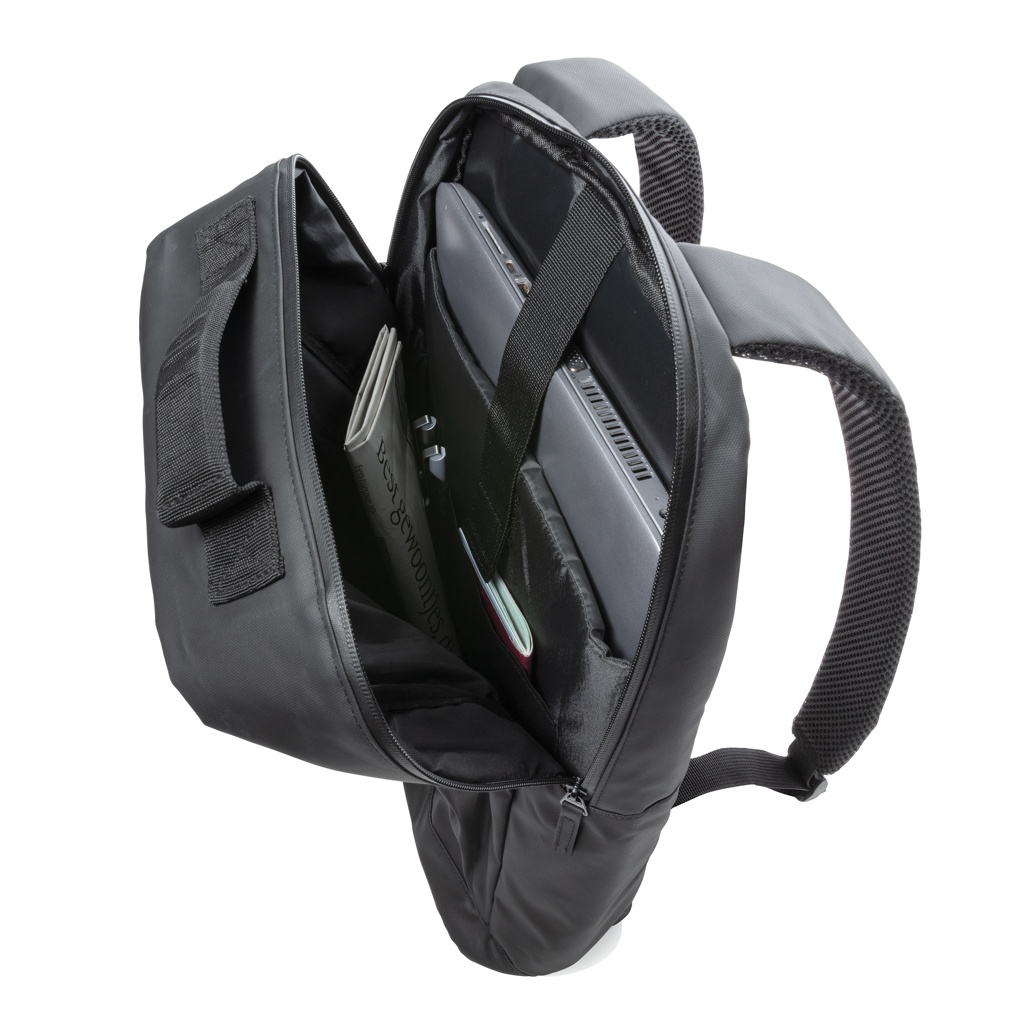 Ole vaivatta tyylikäs tämän kokonaan mustan laptoprepun kanssa. Repussa on tilava lokero kaikille tärkeille tavaroillesi sekä tasku 15,6 ” kannettavalle. PVC-vapaa.