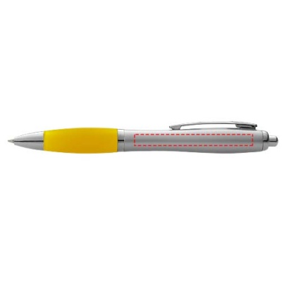 Kuulakärkikynä, jossa on click-toiminto. Pehmeä ote.