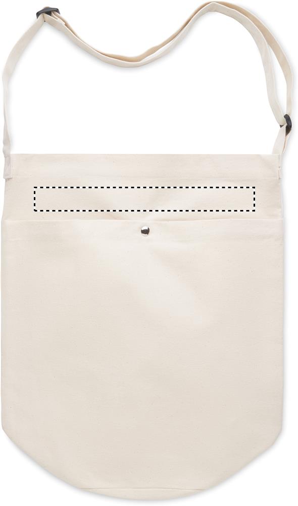 Kangaskassi, jossa pitkä säädettävä olkahihna ja suuri etutasku, jossa on nepparikiinnitys. Sisältää sisätaskun. Materiaali 270 gr/m²canvas.