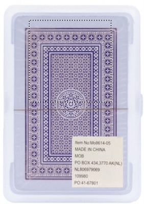 Klassiset pelikortit muovikotelossa, sisältää 54 korttia.