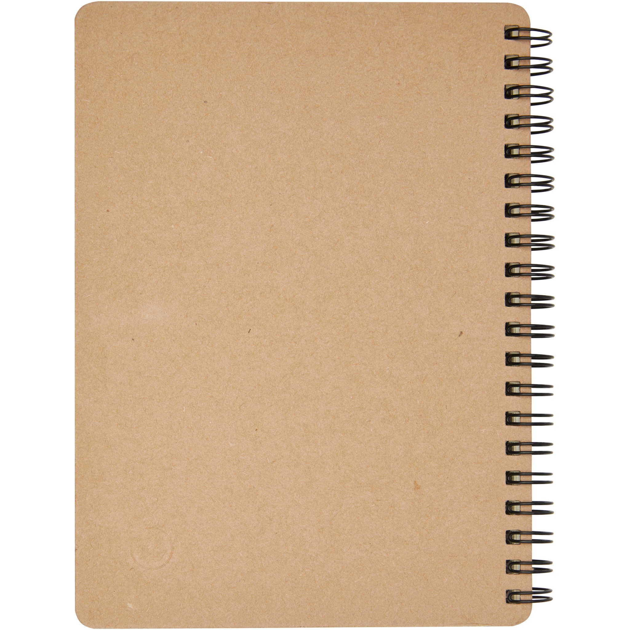 Muistikirja, koko A6. Kannet ja sivut kierrätyspaperia. 60 viivoitettua sivua ja yhteensopiva kynä. Paketissa kynä ja muistikirja.