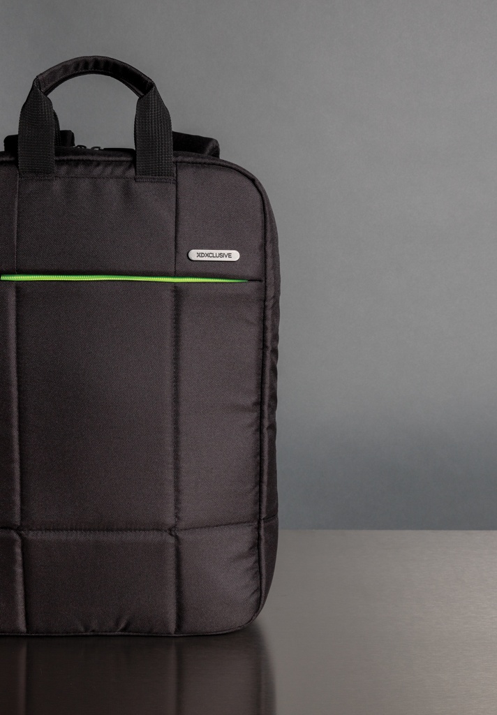 Minimoi hiilijalanjälkesi tällä ympäristöystävällisellä laptoprepulla, joka säästää energiaa ja vähentää tuotannon aikaista saastuttamista. Tässä laptoprepussa kannat 15,6 ” kannettavasi tyylillä. Edessä olevan vetoketjutaskun kautta pääset nopeasti käsiksi tavaroihisi. Valmistettu ympäristöä säästävästä RPET-materiaalista, PVC-vapaa. Rekisteröity design® Ulkopinta: 100% 600D kierrätettyä polyesteriä/Vuori: 100% 210D kierrätettyä polyesteriä.