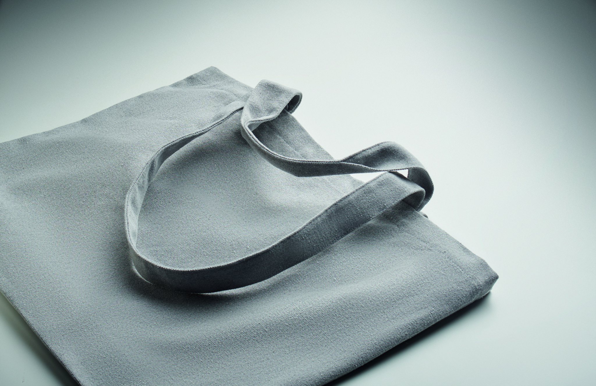 Ostos-/rantakassi kierrätetystä kankaasta (60 % kierrätettyä puuvillaa, 40 % kierrätettyä polyesteriä), jossa lyhyet ja pitkät kahvat. 320 g/m².