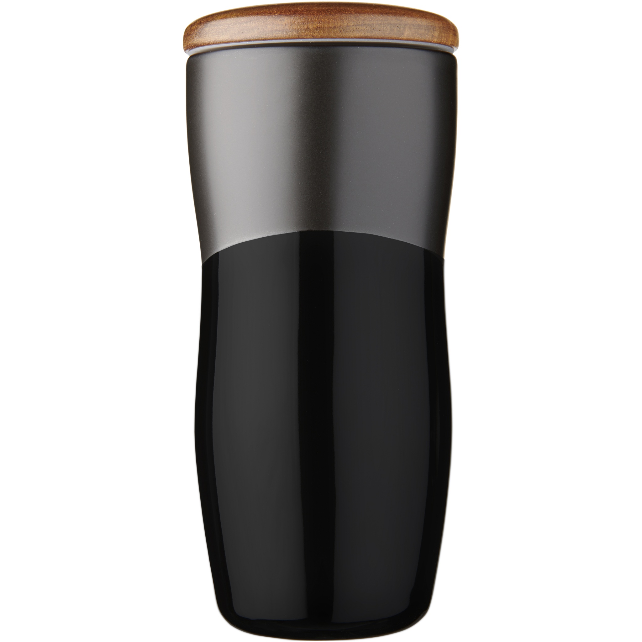 Keraaminen muki, jossa matta ja kiiltävä luovat hienon kontrastin. Kaksiseinäinen keraaminen rakenne estää myös veden kondensoitumisen mukin ulkopuolelle. Puinen tulppa. Tilavuus 370ml. Toimitetaan Avenue-lahjapakkauksessa.
