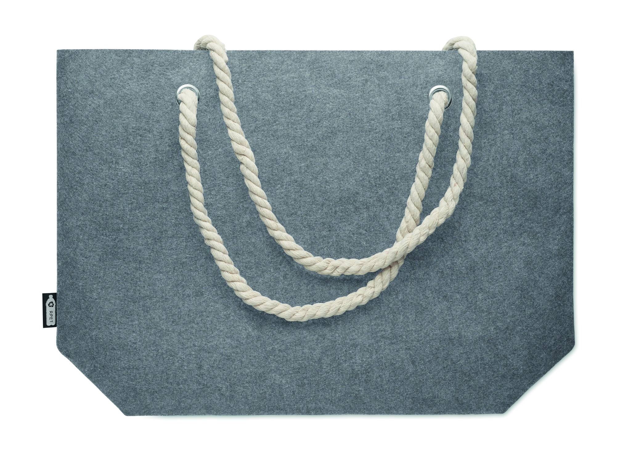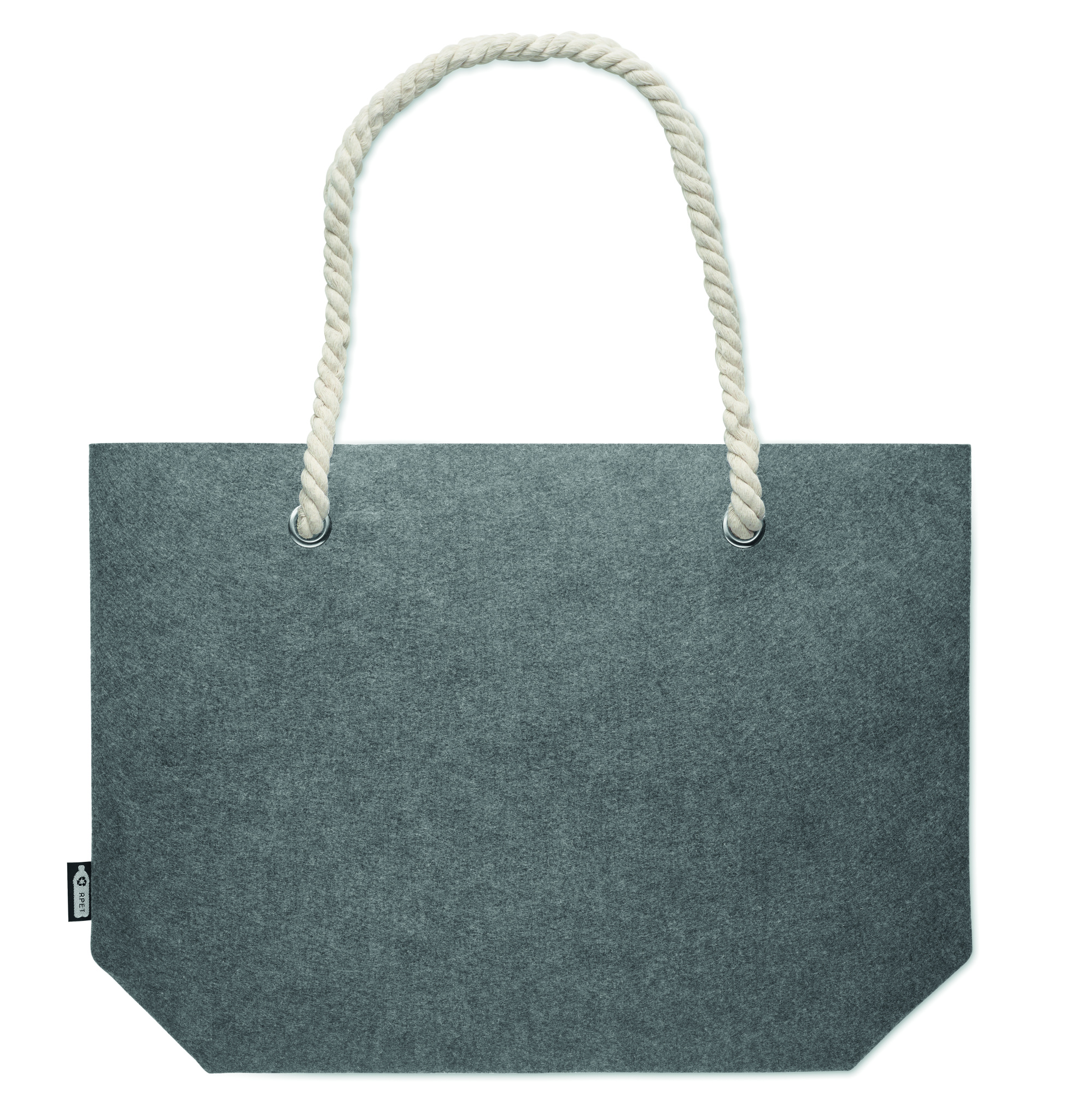 RPET-huopainen rantalaukku tai ostoskassi nyörikahvalla. Huovan paksuus: 2 mm.