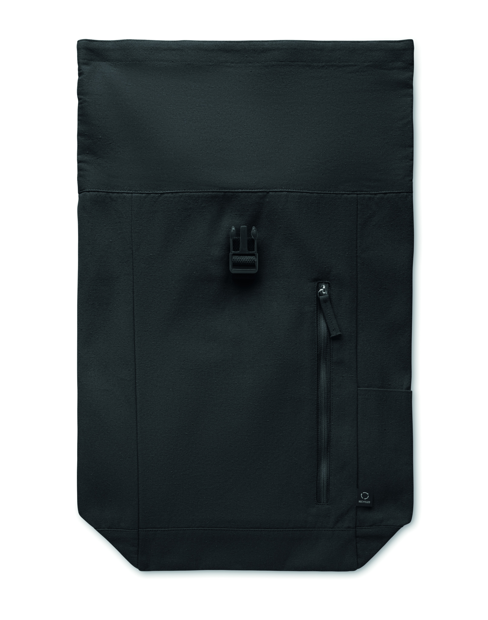 Rullareppu koukulla suljettavalla lenkillä 390 g/m² kierrätettyä puuvillaa (80 %) ja kierrätettyä polyesteriä (20 %). Vetoketjullinen etutasku.
