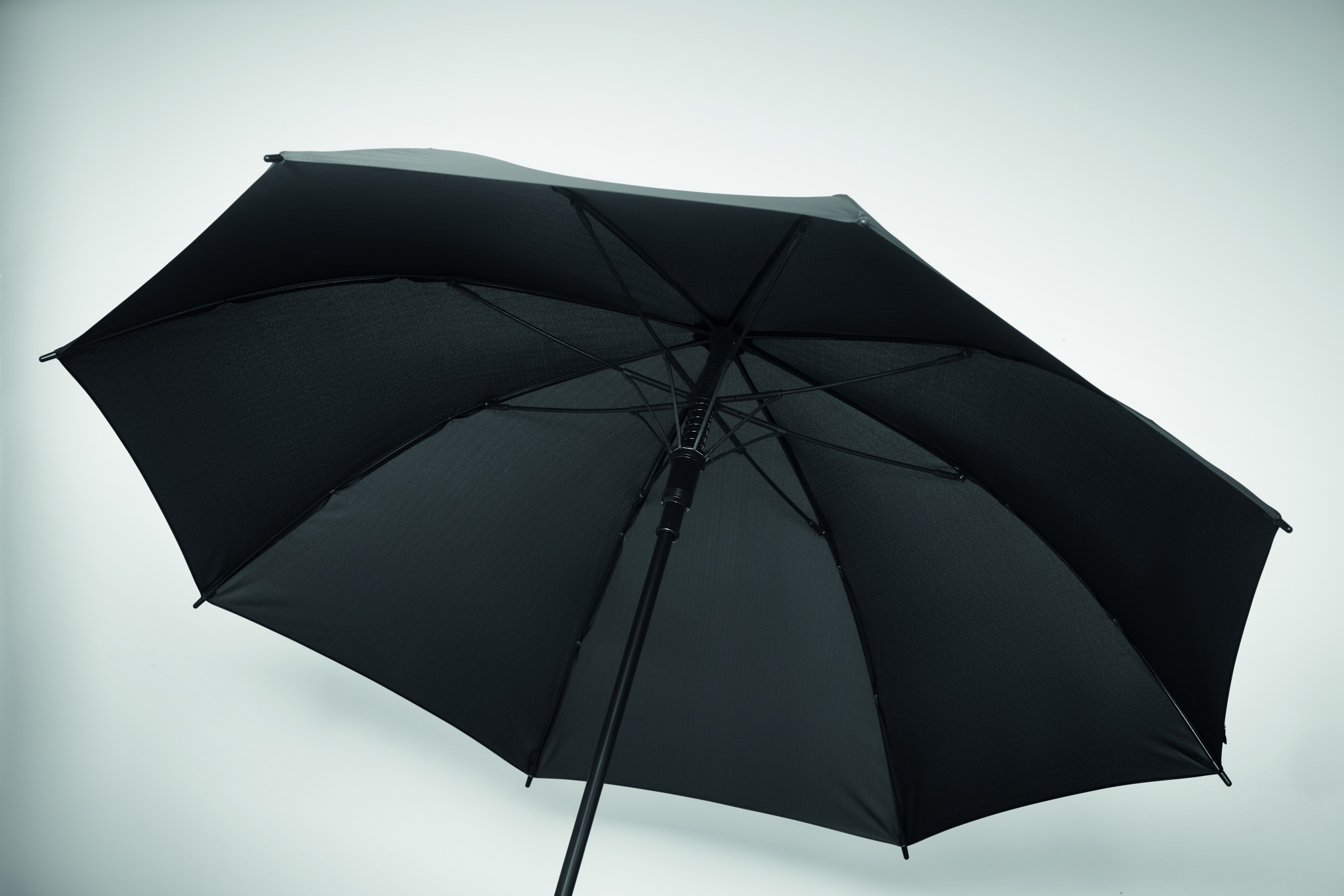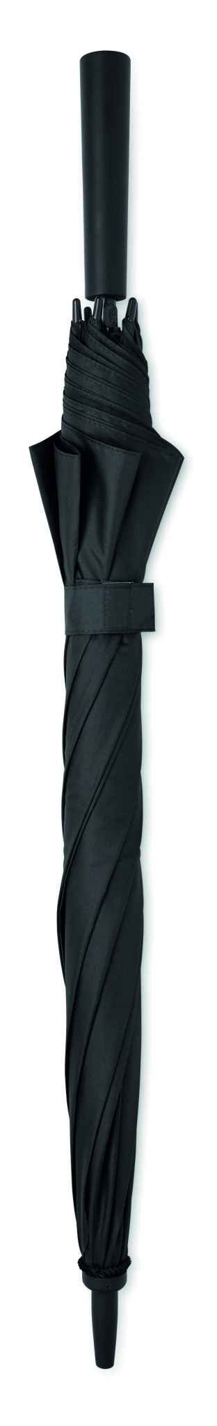 23 tuuman automaattisesti avautuva tuulenpitävä sateenvarjo. Materiaali 190T pongee,lasikuiturunko, mustaksi päällystetty varsi ja muovikärjet. ABS-kahva kumipinnoitteella. Manuaalisesti suljettava.
