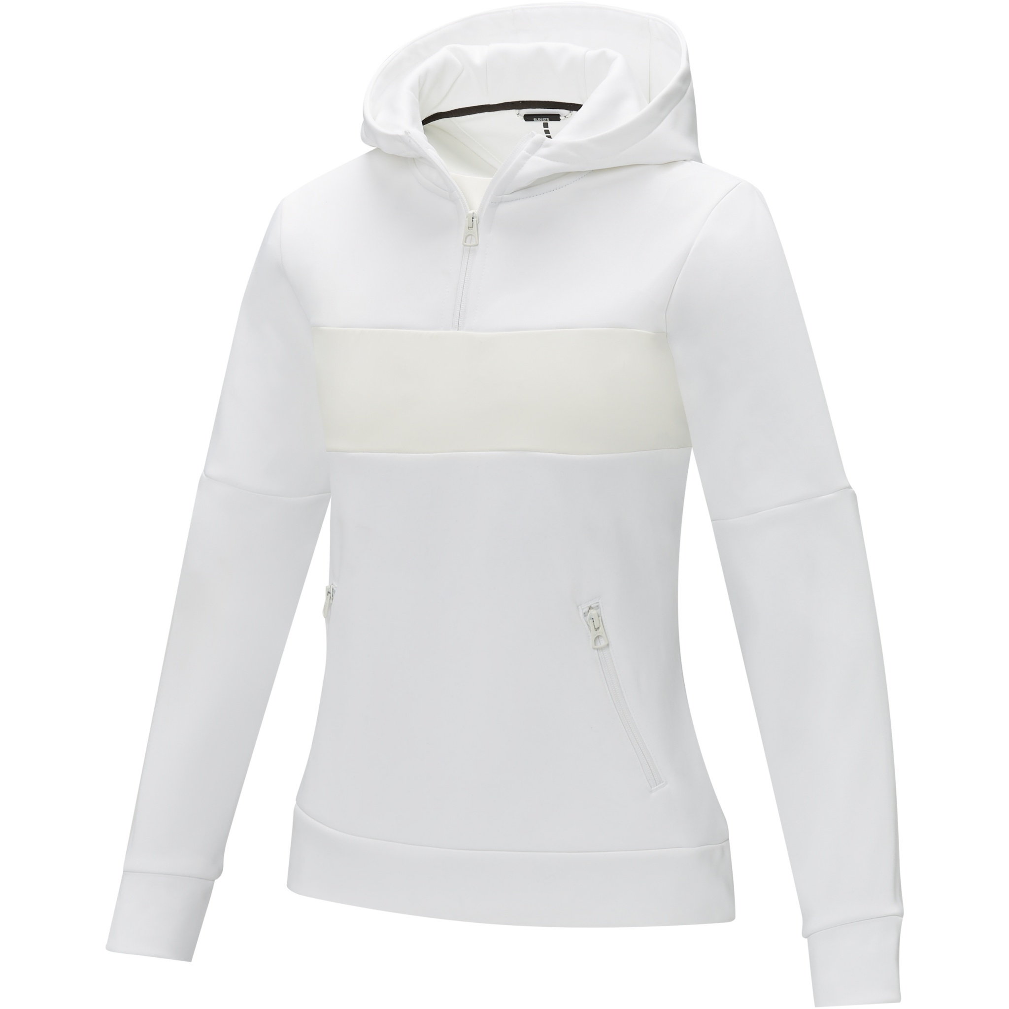 Sayan naisten puolivetoketjullinen anorakkihupullinen svetari, Valkoinen
