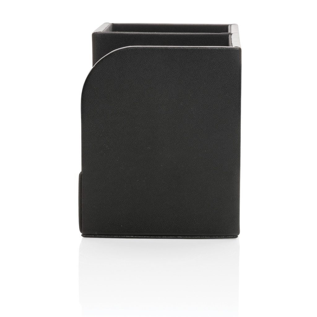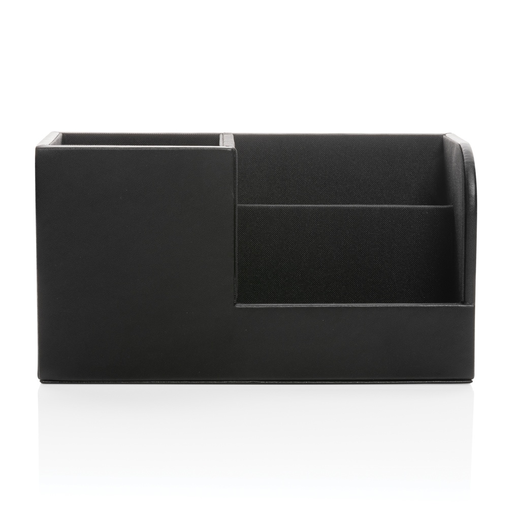 Ylellinen toimistotarviketeline työtarvikkeillesi. Valmistettu RCS (Recycled Claim Standard) sertifioiduista materiaaleista. RCS on standardi, jolla varmennetaan tuotteen kierrätetty materiaali koko toimitusketjun ajan. Sileä ja ylellinen teline päivittää minkä tahansa pöydän upeaksi työympäristöksi. Ulkokuori valmistettu kierrätetystä RCS-sertifioidusta PU:sta. Sisämateriaali: MDF puuta. Kierrätetyn materiaalin kokonaismäärä: 6.5% perustuen tuotteen painoon. PVC-vapaa.