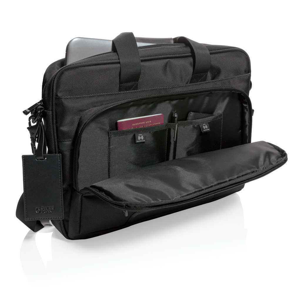 Logo trade liikelahja mainoslahja tuotekuva: Swiss Peak Voyager RFID -tietokonelaukku 15,6"
