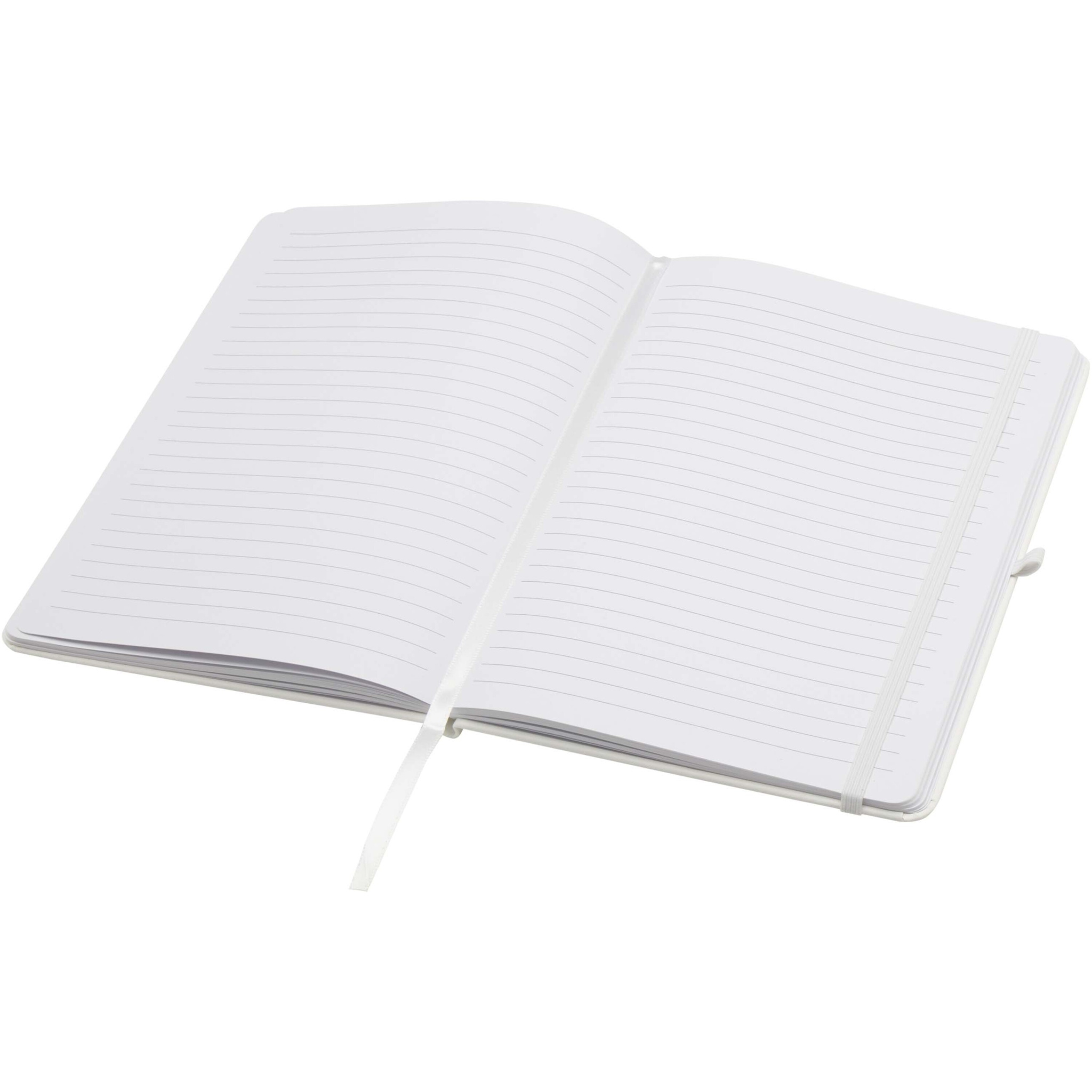Kovakantinen, kierrätetystä pahvista valmistettu Teak A5-muistivihko pyöristetyillä kulmilla on välttämätön toimistotarvike ja lisäksi loistava tilaisuus mainostaa brändiäsi. Muistikirjassa on 96 viivoitettua 70 g/m2 paperiarkkia ja pehmeäntuntuinen kansi. Mukana kynälenkki, kuminauhasuljin ja nauhakirjanmerkki.