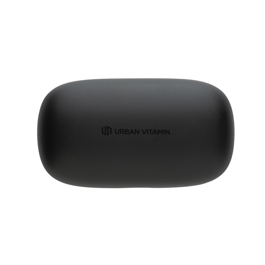 Kun avaat kotelon ja laitat kuulokkeet korviisi, iskee ääni korviisi. Kuulokkeet ja latauskotelo on suunniteltu siten, että voit ottaa ne helposti mukaan missä ja milloin vain. Mukavien nappikuulokkeiden toistoaika on jopa 6 tuntia ja latauskotelo mahdollistaa jopa 20 tunnin toistoajan. Kun joku soittaa sinulle, yksinkertaisesti vastaa siihen stereona kiitos sisäänrakennetun ENC mikrofonin. IPX 4 -luokitus tekee kuulokkeista säänkestävät, joten voit huoletta käyttää niitä ulkona. Korvanapit ja latauskotelo on valmistettu RCS (Recycled Claim Standard) sertifioidusta kierrätetystä ABS:stä. Kierrätetyn materiaalin kokonaismäärä: 55% perustuen tuotteen painoon. RCS sertifiointi varmistaa kierrätettyjen materiaalien täysin sertifioidun toimitusketjun. Urban Vitamin -tuotteet ovat PVC-vapaita, ja ne on pakattu pakkauksiin, joissa on käytetty vähemmän muovia.