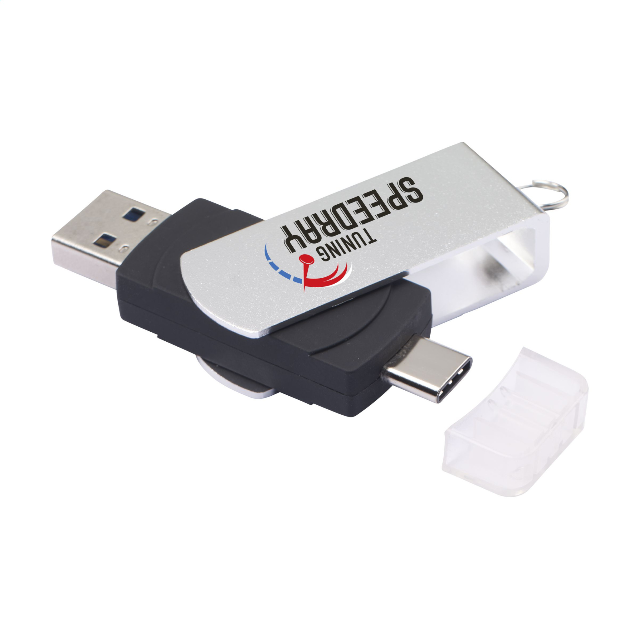 Kiinnitä toiselle puolelle USB (versio 3.0) tiedostojen turvalliseen ja kätevään säilytykseen ja kuljetukseen ja toiselle puolelle • Type-C (uusi standardi) liitinsuojus, jota käytetään älypuhelimien ja tablettien tietojen tallentamiseen. . Käännä yhdellä liikkeellä ABS-USB-tikkua metallista edestä, mikä varmistaa tikun optimaalisen suojan. Avaimenperällä. Yhteensopiva 2.0 ja 3.0 USB-porttien, PC- ja Mac-tietokoneiden kanssa. Jopa 10 kertaa nopeammat luku-/kirjoitusnopeudet yhdessä 3.0-portin kanssa. Valmis välittömään käyttöön Plug & Play -järjestelmän avulla. Käytettävissä Windowsissa, Macissa ja Linuxissa. Jokainen pala laatikossa. Hinta sisältää yksivärisen painatuksen tuotteen toiselle puolelle.